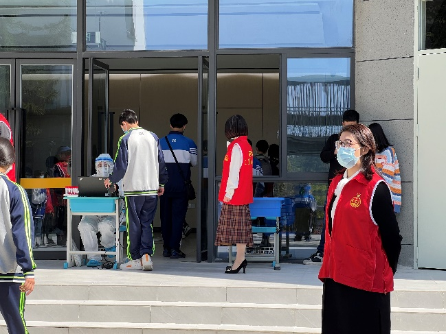 疫情反彈以來,我校黨總支要求黨員干部、黨員教師要扛起政治責任,爭做響應(yīng)黨組織號召的“先行者”、落實防控措施的“引領(lǐng)者”、普及防護知識的“宣傳者”、無私奉獻愛心的“傳遞者”,以實際行動踐行黨員初心使命。核酸檢測現(xiàn)場,各支部黨員志愿者們迅速進入角色,有的協(xié)助登記人員信息,有的組織排隊和維持秩序,有的提醒師生出示核酸檢測預(yù)登記碼和保持一米安全距離……,細致落實每一個工作細節(jié)。“疫”往無前,沖鋒在先,黨員志愿者們在實干中彰顯黨性,在行動中書寫擔當,共同筑牢疫情防控安全防線。
