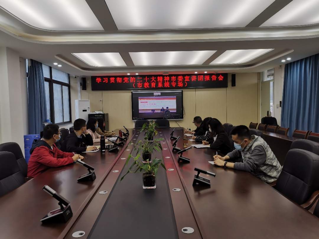 11月25日上午,全市教育系統(tǒng)召開黨的二十大精神專場宣講報(bào)告會(huì),市委宣講團(tuán)成員、市委教育工委書記、市教育局黨組書記、局長游昕作了重要發(fā)言。我校全體黨總支成員、各支部書記通過線上視頻方式學(xué)習(xí)了會(huì)議精神。