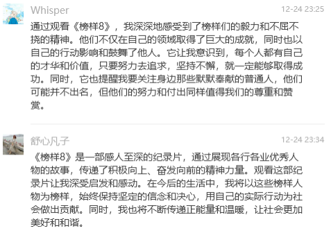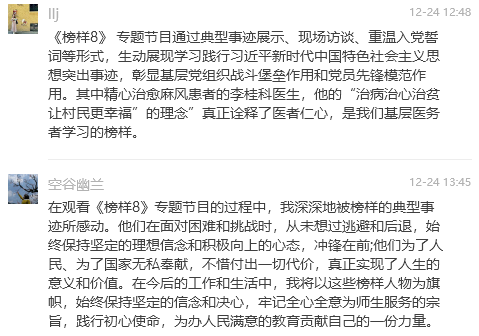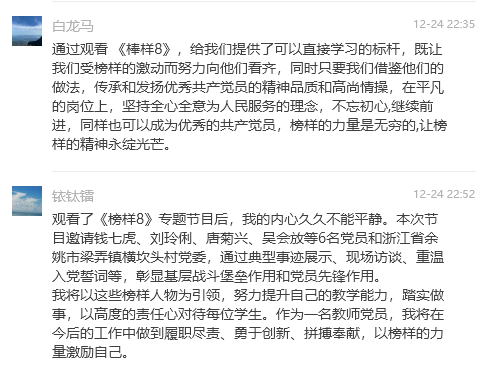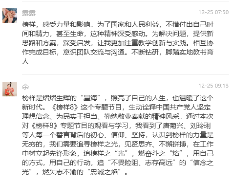 第一支部黨員學(xué)習(xí)《榜樣8》專題節(jié)目心得摘選: