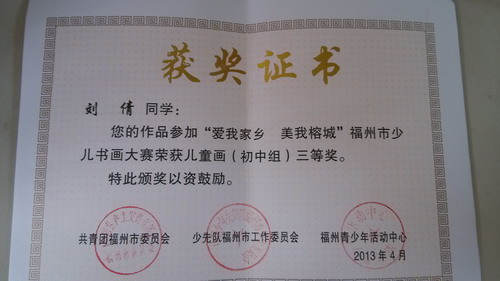 我校在"愛我家鄉(xiāng) 美我榕城"福州市少兒書畫大賽活動中獲獎(圖文)