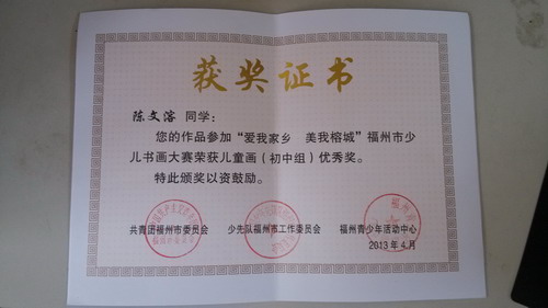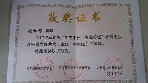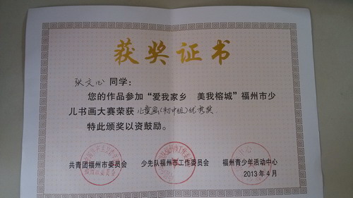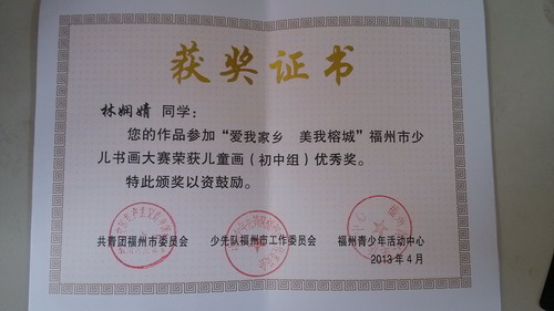 恭喜我校在"愛我家鄉(xiāng) 美我榕城"福州市少兒書畫大賽活動中獲獎
