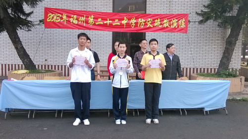 | 2013年5月13日,我校初中部在閩江學(xué)院舉行了升旗儀式,會(huì)上,校領(lǐng)導(dǎo)宣布了2013年校園藝術(shù)節(jié)“班班有歌聲”,“班班有美展”的獲獎(jiǎng)名單,并頒發(fā)了獎(jiǎng)狀。同時(shí),學(xué)校領(lǐng)導(dǎo)也對(duì)今年學(xué)校獲得市三好生、市優(yōu)秀學(xué)生干部的同學(xué)進(jìn)行了表彰! 福州商貿(mào)職專 福州二十二中 德育處 2013.5.13 初中部 “班班有歌聲” 評(píng)比結(jié)果 第一名:初一2 第二名:初二2 初二3 第三名:初一3 初二1 初一1 初中部 “班班有美展” 評(píng)比結(jié)果 第一名:初二2 第二名:初一2 初一1 第三名:初二3 初一3 初二1 市級(jí)三好生: 邵輝鴻(初三3) 林鴻輝(初二1) 林金榕(10升學(xué)) 黃娟妹(11商外) 祝青(11財(cái)會(huì)) 李朋飛(12級(jí)1班) 黃鑫(12級(jí)5班) 市級(jí)優(yōu)秀學(xué)生干部: 江劉鑫(初二2) 林文杰(11計(jì)算機(jī)) 盧婷(12級(jí)4班) 市級(jí)先進(jìn)班集體: 初二(1)班 11級(jí)商貿(mào)班 12級(jí)(3)班 2012-2013學(xué)年初中部“學(xué)習(xí)之星”獲獎(jiǎng)名單 初一 | 名次 | 班級(jí) | 姓名 | | 1 | 2班 | 文雅婷 | | 2 | 1班 | 陳小靚 | | 3 | 1班 | 盧長(zhǎng)成 | | 4 | 1班 | 應(yīng)煉青 | | 5 | 2班 | 林雨欣 | | 6 | 3班 | 林金玉 | 初二 | 名次 | 班級(jí) | 姓 名 | | 1 | 3班 | 張文心* | | 2 | 2班 | 江劉鑫 | | 3 | 1班 | 林鴻輝 | | 4 | 3班 | 林志斌 | | 5 | 2班 | 林日煥 | | 6 | 1班 | 林嫻婧 | | 7 | 1班 | 周佳煒 | 初三 | 名次 | 班級(jí) | 姓 名 | | 1 | 2班 | 高姍 | | 2 | 3班 | 周紫晨 | | 3 | 1班 | 陳民倩 | | 4 | 3班 | 吳鑫蕾 | | 5 | 3班 | 邵輝鴻 | | 6 | 1班 | 鮑鑒清 |  |