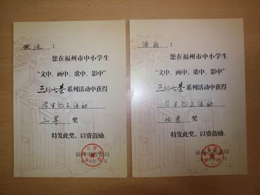 熱烈慶祝我校湯麗、姚遠(yuǎn)2位同學(xué)在“三坊七巷”征文活動中獲獎