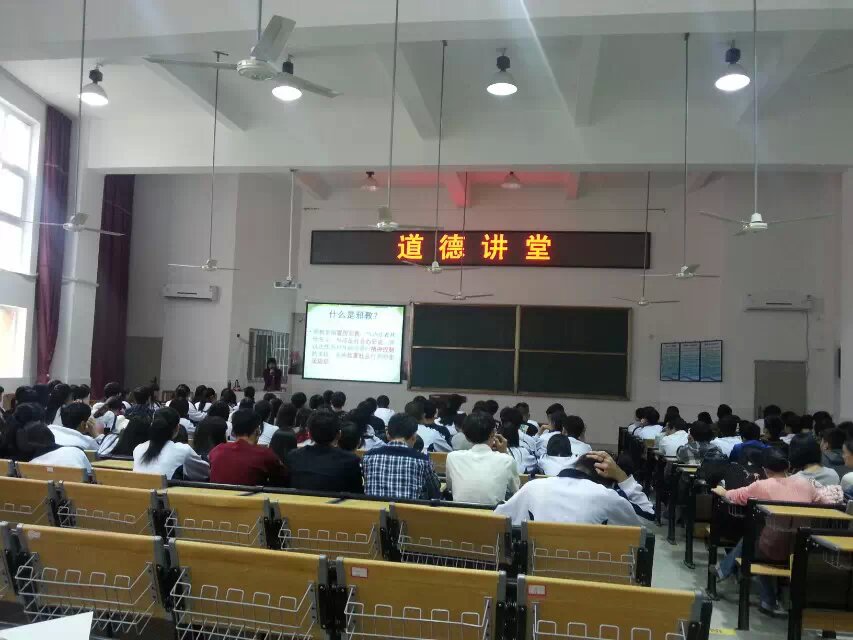 | 2014年11月28日下午第二節(jié)課,福州商貿(mào)職專(福州22中)開展了“我為校園核心價(jià)值觀代言——校園反邪教”的道德講堂,由張艷老師主講。她通過大量的視頻和實(shí)例來(lái)分析邪教癡迷容易導(dǎo)致的一些心理障礙,從而導(dǎo)致個(gè)人乃至一個(gè)家庭的毀滅,充分說(shuō)明了邪教對(duì)心理健康的巨大破壞。次道德講堂活動(dòng)讓大家了解了邪教組織、邪教活動(dòng)的基本特征及危害,從而讓學(xué)生進(jìn)一步提高識(shí)別、抵御和有效防范邪教的能力,為維護(hù)社會(huì)穩(wěn)定,營(yíng)造和諧文明的校園環(huán)境打下良好基礎(chǔ)。  |