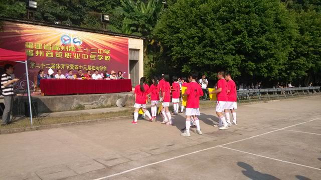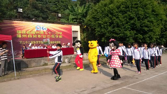 | 秋高氣爽的十月,又迎來了一年一度的體育節(jié),2014年10月23日福州商貿(mào)職業(yè)中專學校(福州第二十二中學)在校舉行校第二十二屆體育節(jié)暨43屆校運動會。 初中部的入場式體現(xiàn)了班級集體風貌,走過主席臺的同學精神抖擻,口號響亮。職專部的入場式體現(xiàn)了專業(yè)性、時尚性,13物流班,能夠?qū)I(yè)與經(jīng)典故事相結(jié)合,用現(xiàn)代技術(shù)解決問題,同時體現(xiàn)了專業(yè)的優(yōu)越性;13商貿(mào)班用4個環(huán)節(jié)說明了一個多專業(yè)集體的不同魅力。接下來在崔勇副校長致辭,丘琰校長宣布運動會開始,裁判長、學生運動員代表宣誓之后,比賽正式開始了。  |