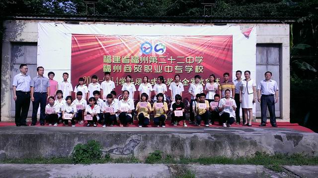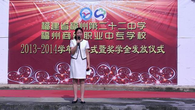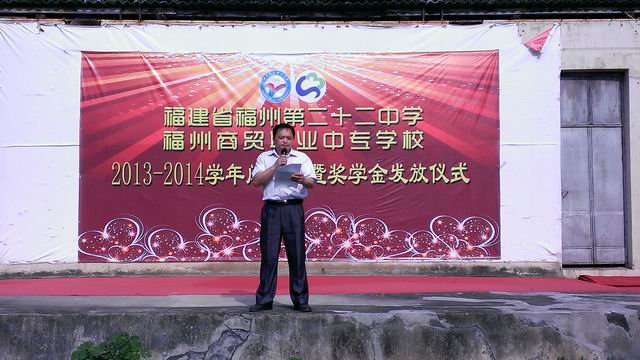 | 2014年6月27日上午,在雄壯的國歌聲中,2013-2014學(xué)年第一學(xué)期閉學(xué)式在我校操場(chǎng)拉開帷幕。首先,由黃舒榮副校長向全體師生宣讀了獲得本學(xué)期獎(jiǎng)學(xué)金的學(xué)生名單,在全體師生的見證下,由我校4位優(yōu)秀畢業(yè)生向獲得獎(jiǎng)學(xué)金的50位同學(xué)頒發(fā)了獎(jiǎng)金。接著,丘琰校長在致辭中,代表學(xué)校感謝歷屆校友的支持,回顧了一學(xué)年以來我校師生在教育教學(xué)中收獲的累累碩果,并激勵(lì)老師們同學(xué)們?cè)俳釉賲柸〉脙?yōu)異成績(jī)。最后,崔勇副校長宣讀了2013-2014學(xué)年光榮冊(cè)名單,強(qiáng)調(diào)了暑期安全注意事項(xiàng),包括交通、飲食以及特別強(qiáng)調(diào)了游泳安全,還進(jìn)行了防恐安全教育,并預(yù)祝全校師生度過一個(gè)平安快樂的假期! 福州商貿(mào)職專 福州二十二中 2014.6.27   |