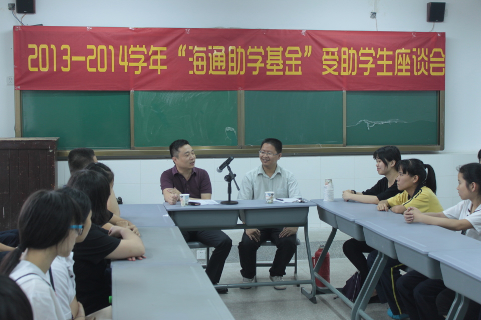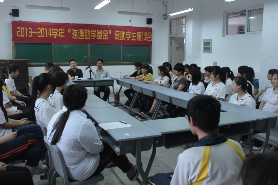 | 在“海通基金”正式運(yùn)行三個(gè)月后,為了給受助學(xué)生們建立一個(gè)溝通交流的平臺(tái),繼續(xù)跟進(jìn)和了解孩子們的學(xué)習(xí)與生活情況,幫助他們順利完成學(xué)業(yè),校友海通集團(tuán)董事長(zhǎng)林成國(guó)先生于2014年6月18日下午又再次回到母校,與受助學(xué)生們進(jìn)行了一場(chǎng)既輕松,又意義深遠(yuǎn)的座談會(huì)。 會(huì)上同學(xué)們匯報(bào)了自己在學(xué)習(xí)生活中遇到的困難,問(wèn)題和疑惑,林成國(guó)先生以他在學(xué)習(xí),工作,創(chuàng)業(yè)中一個(gè)個(gè)鮮活的例子告訴同學(xué)們:要堅(jiān)持自己的理想,在人生低谷時(shí)以家庭責(zé)任,社會(huì)責(zé)任堅(jiān)持下來(lái)。同時(shí)他激勵(lì)同學(xué)們不要以自己的家庭環(huán)境不好,生活環(huán)境不好而自暴自棄,應(yīng)該腳踏實(shí)地,一步一步做起,闖出一片天地。最后,他還談到知識(shí)的重要性,他希望同學(xué)們?cè)谑苤竽芘W(xué)習(xí),在將來(lái)學(xué)有所成時(shí)也能和他一樣為社會(huì)盡自己的一份責(zé)任。 這場(chǎng)座談會(huì)同學(xué)們受益良多,林先生的一席話讓許多同學(xué)茅塞頓開(kāi),他用三十年的人生經(jīng)歷讓同學(xué)們學(xué)到了“堅(jiān)持,責(zé)任和感恩”。希望所有受助的同學(xué)們都能把這些道理牢記于心,努力學(xué)習(xí),成為一個(gè)有道德,有文化,樂(lè)于奉獻(xiàn)的社會(huì)公民。  |