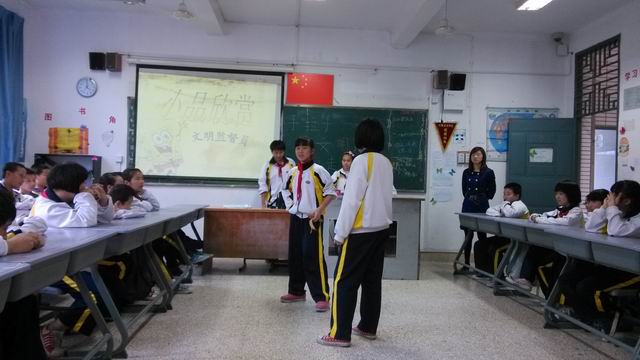 | 2014年4月21日星期一下午,我校初一3班開展了“手拉手文明路上一起走”主題班會。班會在2位主持人的引導下,從全體同學向老師們問好中開始了。班會內(nèi)容豐富,有詩朗誦,小品表演,歌曲表演欣賞《左手右手》,最后的游戲環(huán)節(jié)“你問我答”將班會的氛圍推向了高潮,同學們紛紛對“你覺得校園中存在哪些不文明的現(xiàn)象”和“你認為如何做一個文明有禮的人”展開了熱烈的討論。 通過本次的主題班會,同學們對文明禮儀有了更深一層的了解,在今后的學習生活中會更加重視自己的文明言行舉止。  |