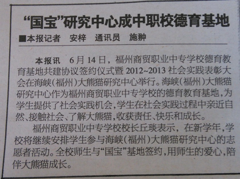 我校與海峽熊貓中心簽訂德育共建基地協(xié)議