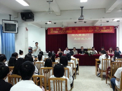 | 春天,是青年人的季節(jié)。五月,是青年人的節(jié)日。 5月24日下午,福州商貿(mào)職業(yè)中專學(xué)校即將走上工作崗位的10級(jí)和11級(jí)學(xué)生們?cè)诹鶚菚?huì)議廳舉行“邁入青春門,走好成人路”的成人宣誓儀式。 儀式上,同學(xué)們一起回顧了曾經(jīng)的美好時(shí)光;一起向同窗好友說出心聲;一起傾聽了老師們對(duì)自己即將步入社會(huì),獨(dú)立承擔(dān)社會(huì)責(zé)任的祝愿;老師們通過視頻給即將走上工作崗位的學(xué)生們送上祝福,建議學(xué)生們?yōu)樽约烘i定一個(gè)人生目標(biāo),許下一個(gè)美好心愿,并用畢生的精力去孜孜不倦地追求,在追求的過程中,充實(shí)自己,磨練自己,提升自己。 最后,11計(jì)算機(jī)的林文杰同學(xué)代表10級(jí)和11級(jí)的學(xué)生們發(fā)表了成人感言:表示就要不斷增強(qiáng)自身的各種本領(lǐng),使自己不僅在年齡上成人,更要從思想上、品格上、行為上成人。 校團(tuán)委 2013.5.24  |