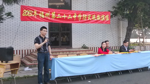 | 為保障全校師生的共同安全,防止突發(fā)事件的發(fā)生,我校根據(jù)實(shí)際情況制訂的“學(xué)校防災(zāi)疏散演練方案”, 旨在通過實(shí)踐演練,增強(qiáng)了師生的應(yīng)急疏散的經(jīng)驗(yàn)和能力?;顒?dòng)開展前我校德育處、保衛(wèi)處和初中部各班班主任進(jìn)行了積極準(zhǔn)備和周密部署。 2013年5月13日早晨7:30,我校初中部開展防災(zāi)疏散演練?;顒?dòng)中,初中部全體師生接到疏散撤離信號(hào)后快速沿規(guī)定路線有序地撤離。學(xué)生反應(yīng)很快,都能秩序地按指定路線迅速撤離至操場。在撤離過程中,沒有擁擠推攘現(xiàn)象發(fā)生。安全撤離后,各班清點(diǎn)人數(shù),報(bào)告總指揮。校崔勇副校長、德育處何宏宇主任對(duì)學(xué)生進(jìn)行防災(zāi)安全知識(shí)宣傳教育。演練活動(dòng)結(jié)束,各班有秩序地回到教室,班主任就本班參加這次演練活動(dòng)立即進(jìn)行分析、小結(jié),再教育。初中部全體師生在領(lǐng)導(dǎo)的指揮下,完成了疏散演練,達(dá)到了提高自救能力的要求。 通過這次演練活動(dòng),大大增強(qiáng)了全體師生的安全知識(shí),大大提高了師生逃生、自救、自護(hù)意識(shí),提高抵御和應(yīng)對(duì)緊急突發(fā)事件的能力。整個(gè)演練活動(dòng)達(dá)到了預(yù)期目標(biāo)。 福州市第二十二中學(xué) 福州商貿(mào)職業(yè)中專學(xué)校 2013年5月13日  |