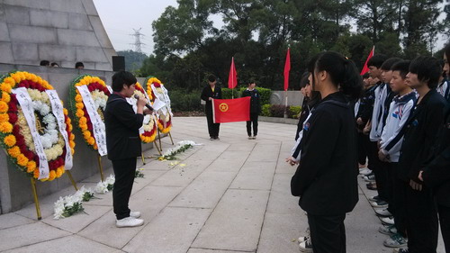 | 福州市商貿(mào)職業(yè)中專學(xué)校于2013年4月3日下午組織全校師生至文林山烈士陵園,向革命烈士紀(jì)念碑敬獻(xiàn)花圈,深切緬懷革命先烈的豐功偉績。 此次祭掃文林山烈士活動(dòng)分為兩個(gè)部分,第一是同學(xué)們對(duì)烈士的祭掃,第二是新團(tuán)員的宣誓。 由10英專李菁文同學(xué)帶領(lǐng)大家宣誓。最后由12級(jí)盧婷同學(xué)代表新團(tuán)員發(fā)言。 通過此次活動(dòng),我校學(xué)生紛紛表示要繼承革命先烈精神,堅(jiān)定正確的理想信念,努力學(xué)習(xí)專業(yè)知識(shí),迅速成才,全心全意為人民服務(wù)。 福州商貿(mào)職專 德育處 2013年4月3日  |
