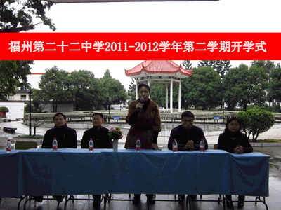 2012年2月7日上午7:50,福州第二十二中學(xué)全體師生進(jìn)行了新學(xué)期開(kāi)學(xué)式。雖然下著小雨,但全體學(xué)生精神飽滿,迎接新學(xué)期的到來(lái)。會(huì)上丘琰校長(zhǎng)向全體師生致以新春的問(wèn)候發(fā)表了熱情洋溢的講話,對(duì)同學(xué)們提出了新學(xué)期的要求,希望在新學(xué)期中同學(xué)們可以獲得好成績(jī)。學(xué)生的安全問(wèn)題一直是校領(lǐng)導(dǎo)最關(guān)注的事,開(kāi)學(xué)式上崔勇副校長(zhǎng)針對(duì)安全問(wèn)題對(duì)同學(xué)們發(fā)表講話,提醒同學(xué)們?cè)趯W(xué)習(xí)生活中應(yīng)該以安全問(wèn)題為先,上放學(xué)注意交通安全,課間注意人生安全。 開(kāi)學(xué)式的舉行標(biāo)志著學(xué)校已整裝待發(fā),將邁上一個(gè)新的征程。在全體師生的不懈努力下,福州第二十二中學(xué)將會(huì)贏得更加燦爛輝煌的明天。 福州二十二中 德育處 2012.2.7