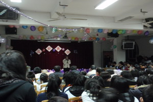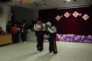 | 我校在12月30日晚上成功舉辦了2010年“寄宿生迎新元旦晚會”。這臺晚會可以說是節(jié)目多、質量好、檔次高,受到學校老師和同學的高度贊揚和肯定。在晚會中涌現(xiàn)出像09財會2班小品《學生會故事》、08商外劉芳同學歌曲《三寸日光》,09美容班張玉玲舞蹈《GEE》等優(yōu)秀節(jié)目,晚會同時還表彰優(yōu)秀宿舍和優(yōu)秀寄宿生。出席本次晚會的有丘琰校長,商雄書記,德育處何宏宇主任,董樂副主任,工會林巧云副主席,以及個年段段長,個班班主任。常言說:“臺上一分鐘、臺下十年功、臺上一人演、臺下百人備”,這臺晚會的成功是我校全體師生團結一心共同努力的結果。 我校領導十分重視大型活動的開展,加上近年來積極推行素質教育,廣泛開展第二課堂活動,以及各班認真、精心的準備,這就為提高晚會質量打上了堅實的基礎。 晚會質量高,與同學們的熱心參與是分不開的,多次彩排糾正了節(jié)目的不足之處,這就大大地提高了節(jié)目的質量。  |
