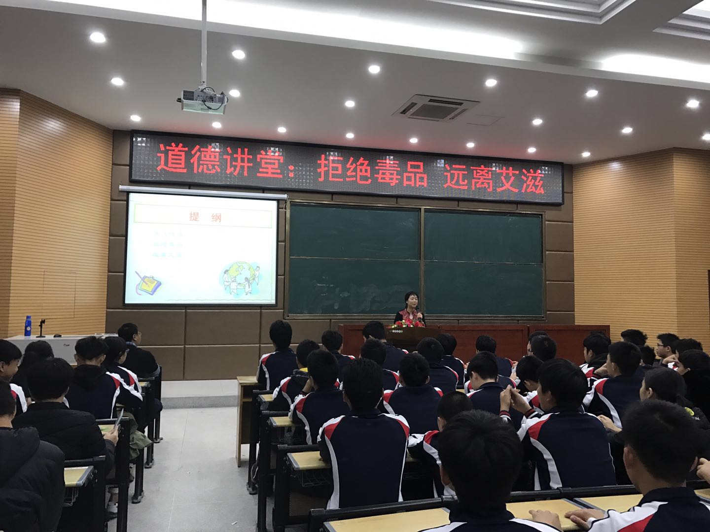 為進(jìn)一步提高學(xué)生的的防艾意識(shí)和知識(shí)水平,幫助學(xué)生拒絕毒品、遠(yuǎn)離艾滋,我校舉辦了道德講堂“拒絕毒品,遠(yuǎn)離艾滋”。職一,職二的部分班級(jí)學(xué)生和老師共同參加了講座。