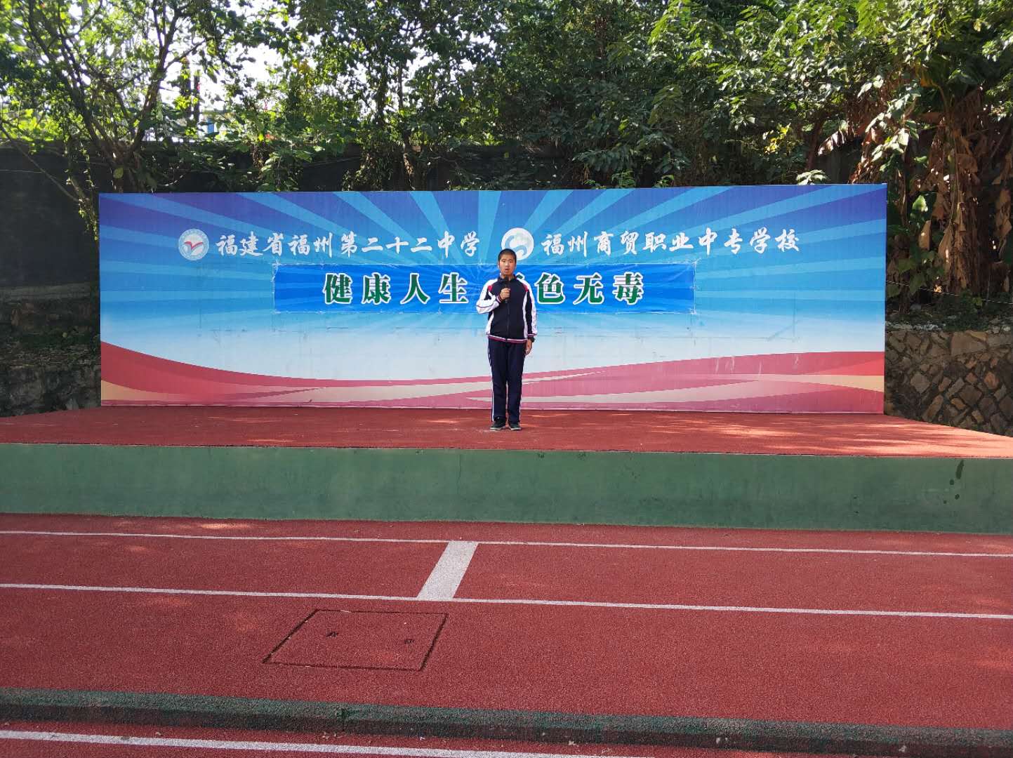 2017年11月20日上午,福州商貿(mào)職業(yè)中專學(xué)校(福州第二十二中學(xué))以“健康人生,綠色無毒”為主題開展國(guó)旗下講話活動(dòng)。學(xué)生代表王博宇同學(xué)在活動(dòng)中發(fā)起禁毒的倡議。