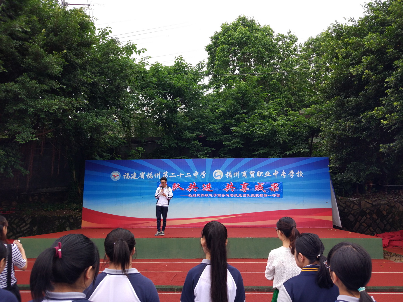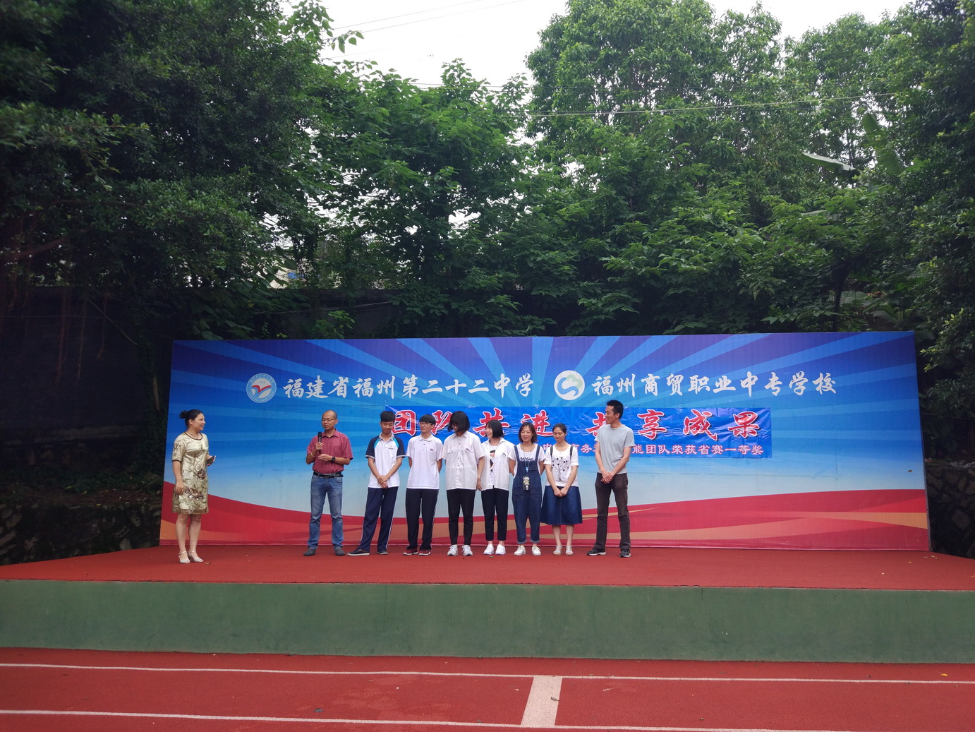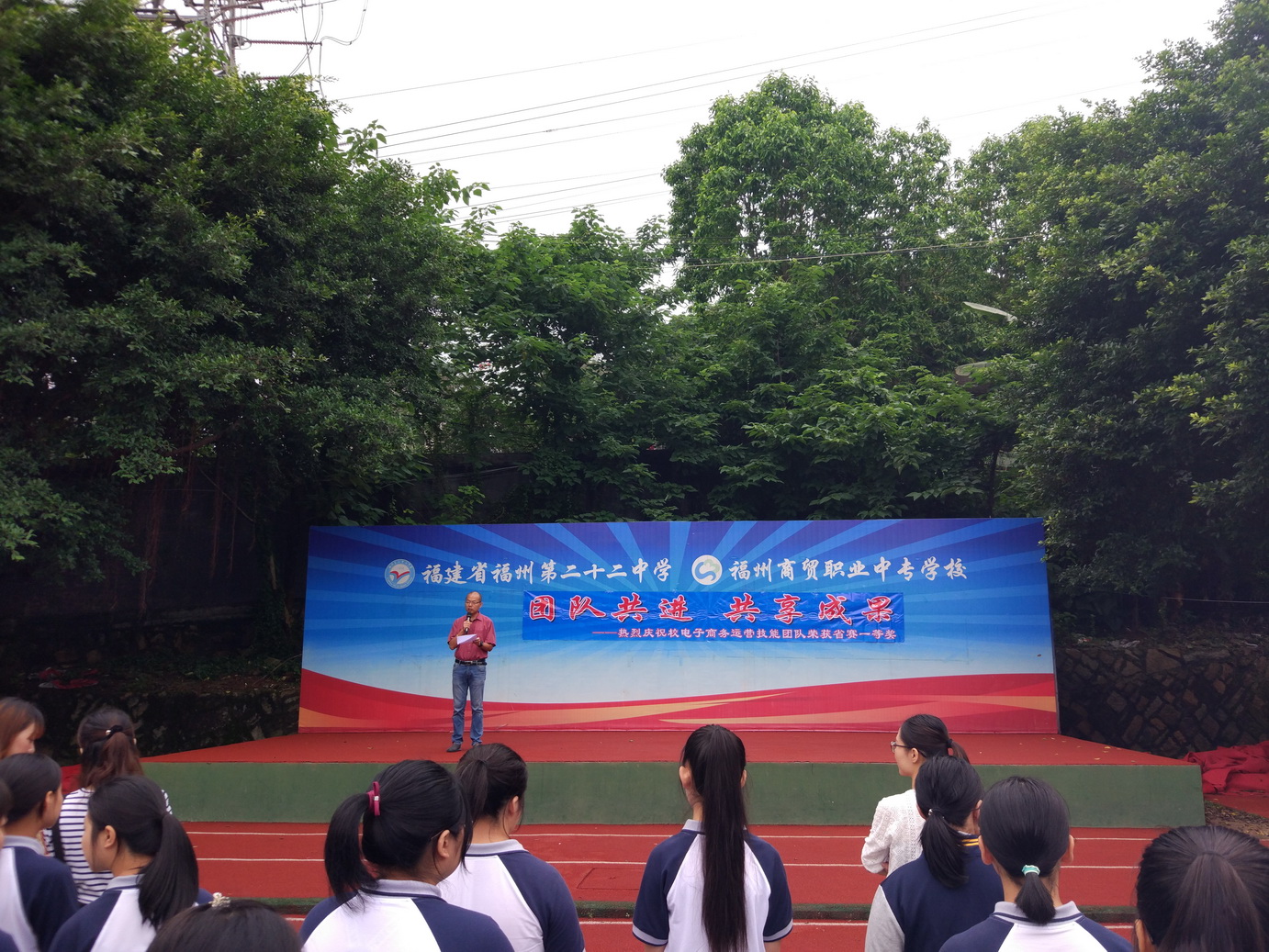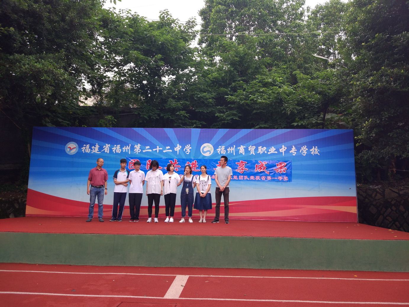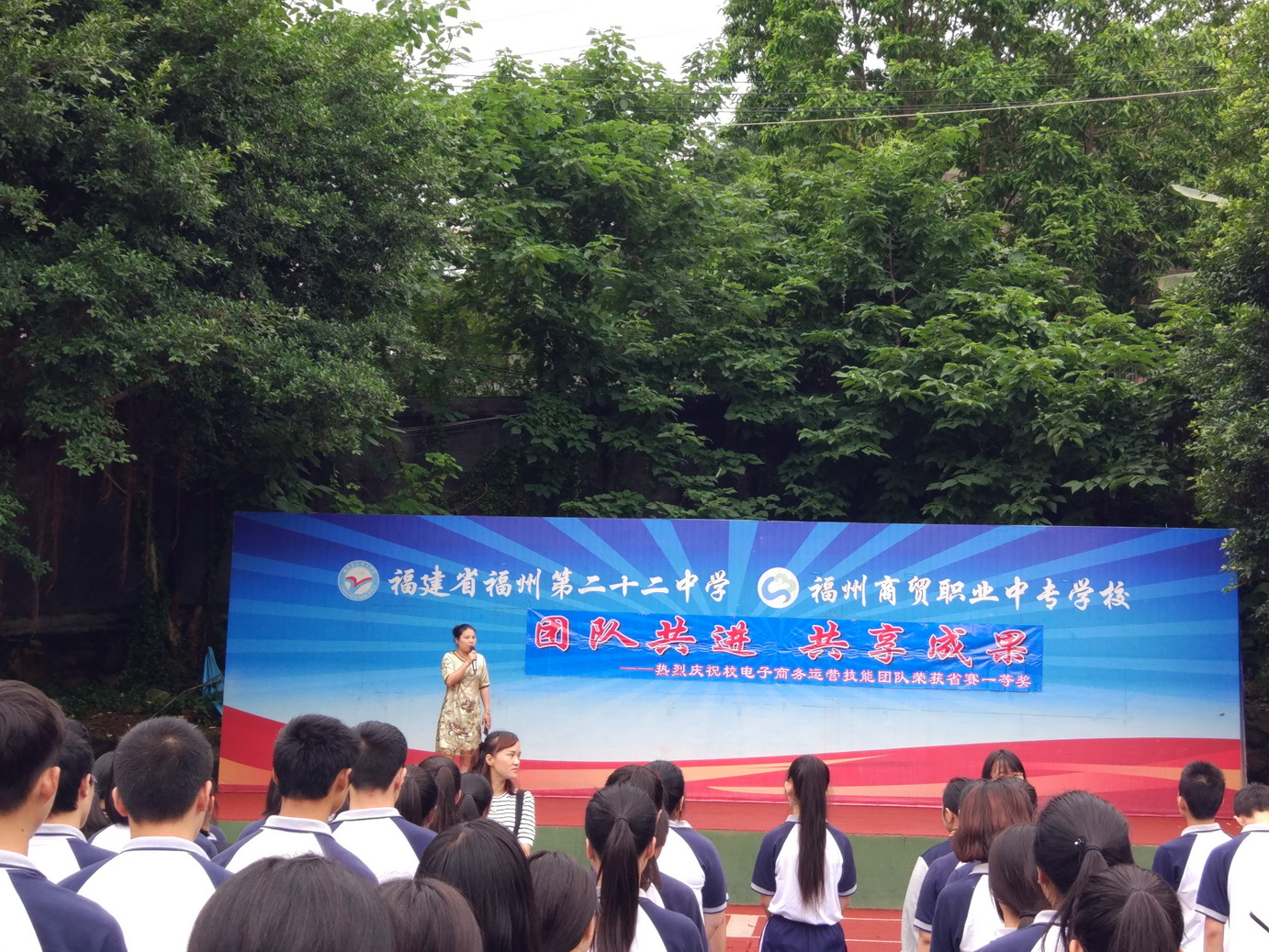 2017年6月5日上午,福州商貿(mào)職業(yè)中專學校(福州第二十二中學)召開了“團隊共進 共享成果”國旗下講話。