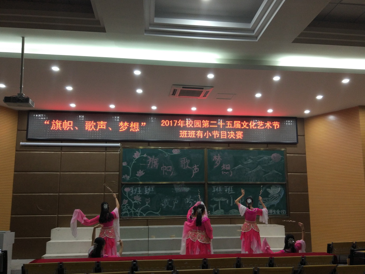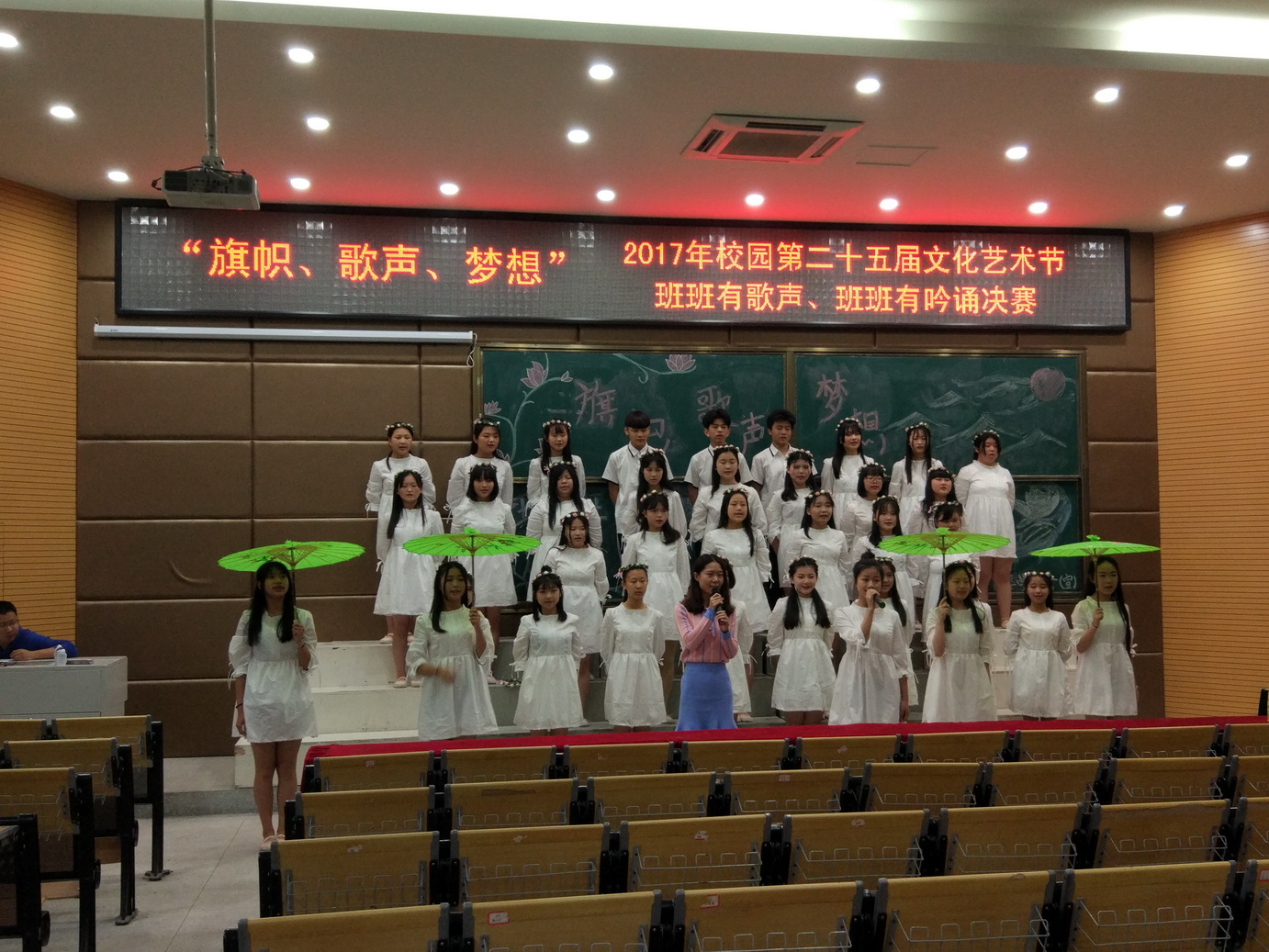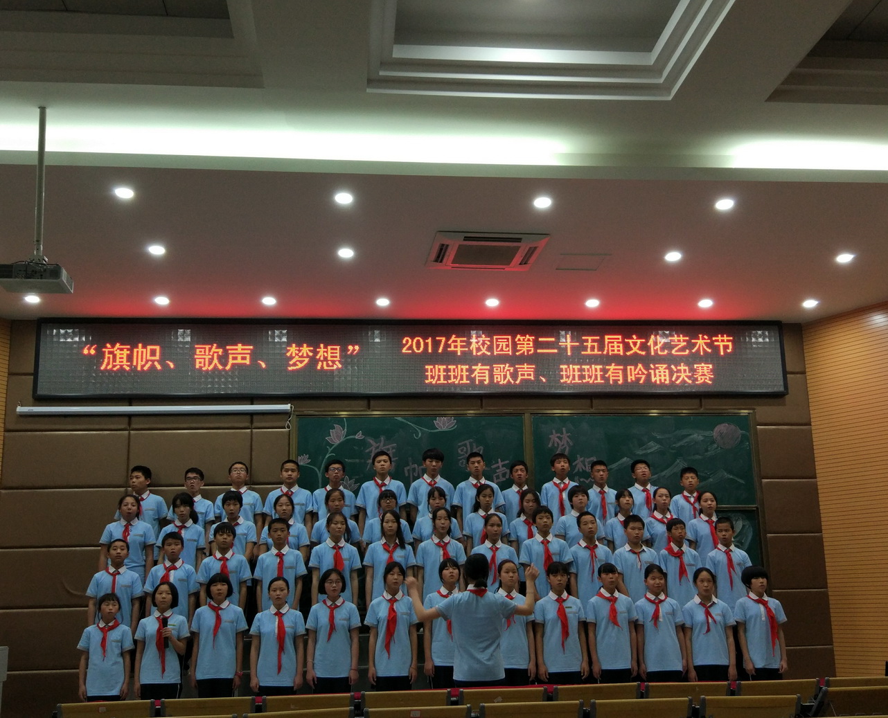 為進一步活躍校園文化,豐富學(xué)生的藝術(shù)生活,繼承革命光榮傳統(tǒng),弘揚民族精神,讓每個學(xué)生都能參與到藝術(shù)活動中,從而提高學(xué)生的藝術(shù)修養(yǎng)在校園內(nèi)唱響時代主旋律,營造健康向上的良好氛圍,通過歌聲傳唱優(yōu)秀歌曲,陶冶學(xué)生情操,2017年4月28日的早上8:30我們在思源樓階梯教室舉辦了一場以“旗幟 歌聲 夢想”為主題的校園班班有歌聲、班班有吟誦、班班有小節(jié)目、班班有課本劇比賽。在本次比賽勝出的班級將會在5月份的藝術(shù)節(jié)進行匯演。各班學(xué)生精心選歌,對比賽充滿了熱情,同時班干部積極帶頭,組織班級的同學(xué)進行練習(xí)。各班班主任也利用課余時間加緊對學(xué)生的訓(xùn)練,指導(dǎo)學(xué)生們練唱。