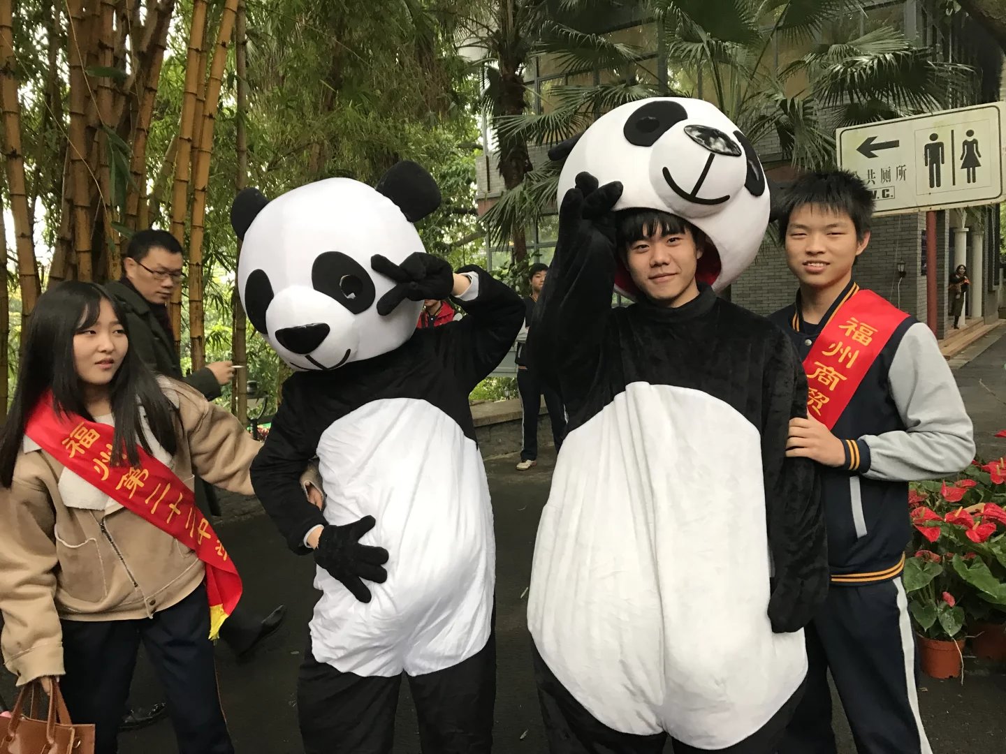 百名師生分設(shè)五大塊開展志愿服務(wù):一是扮演大熊貓團(tuán)隊;二是現(xiàn)場秩序維護(hù)團(tuán)隊;三是禮儀團(tuán)隊;四是簽到團(tuán)隊;五是機(jī)動輔助團(tuán)隊。我們的師生在志愿服務(wù)中,充滿著熱情、面帶著微笑,耐心向觀眾記者解釋,分享熊貓的故事。值得一提的是我們的大熊貓團(tuán)隊,他們穿著笨重的熊貓服裝,一圈一圈地在中心內(nèi)走著,陪同著小朋友、國外友人們拍照;他們擺出可愛的造型,讓許許多多的游客收獲了快樂,但是他們卻已然被汗水所浸透。