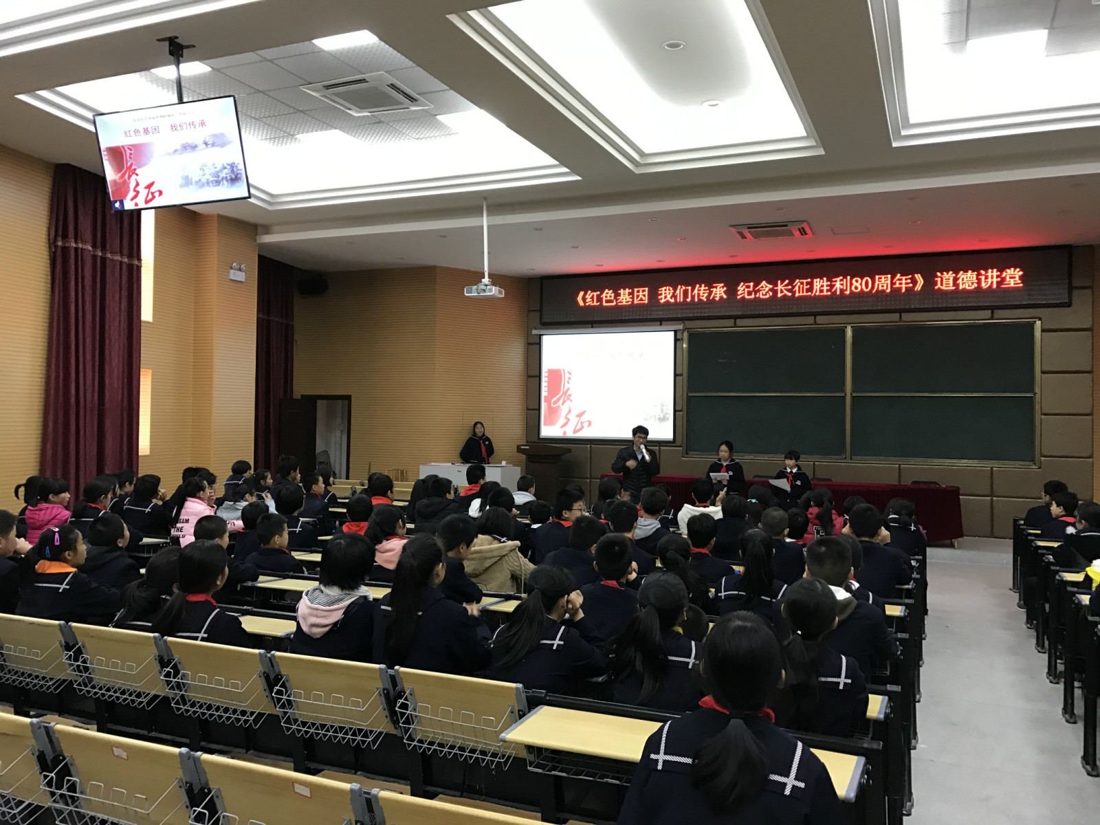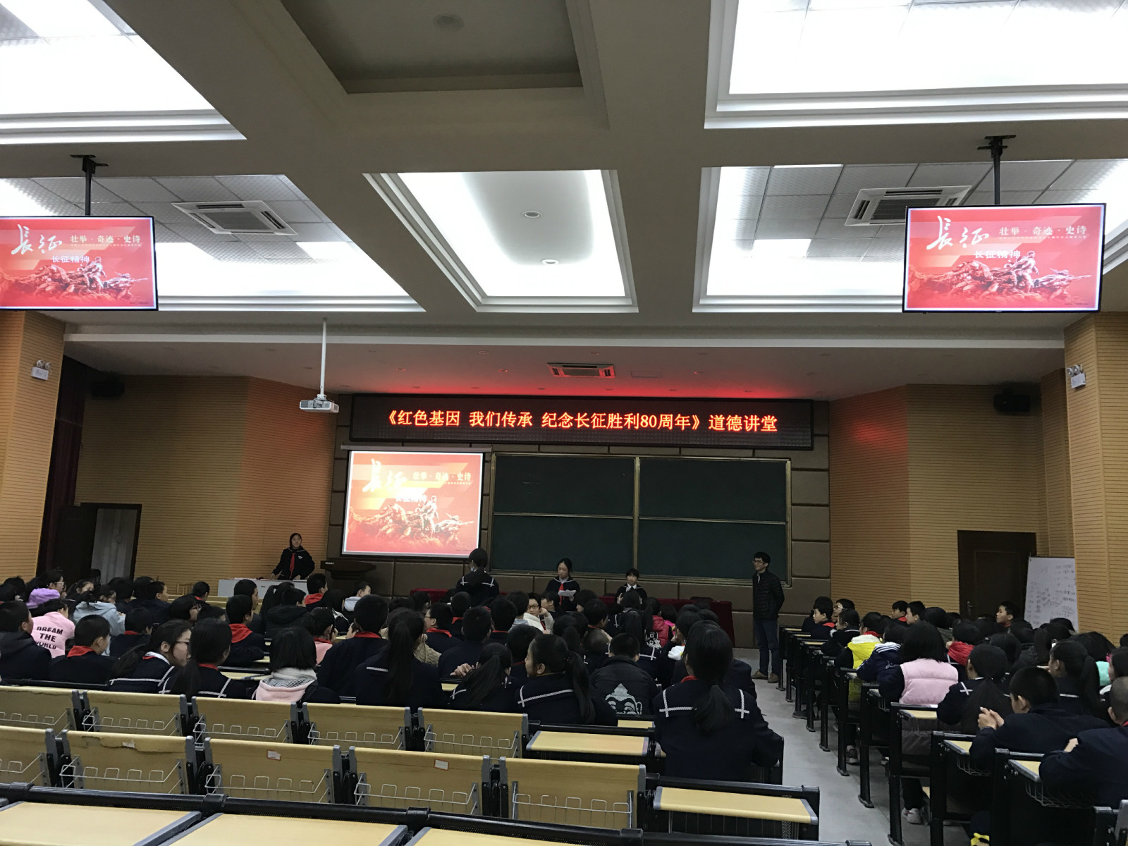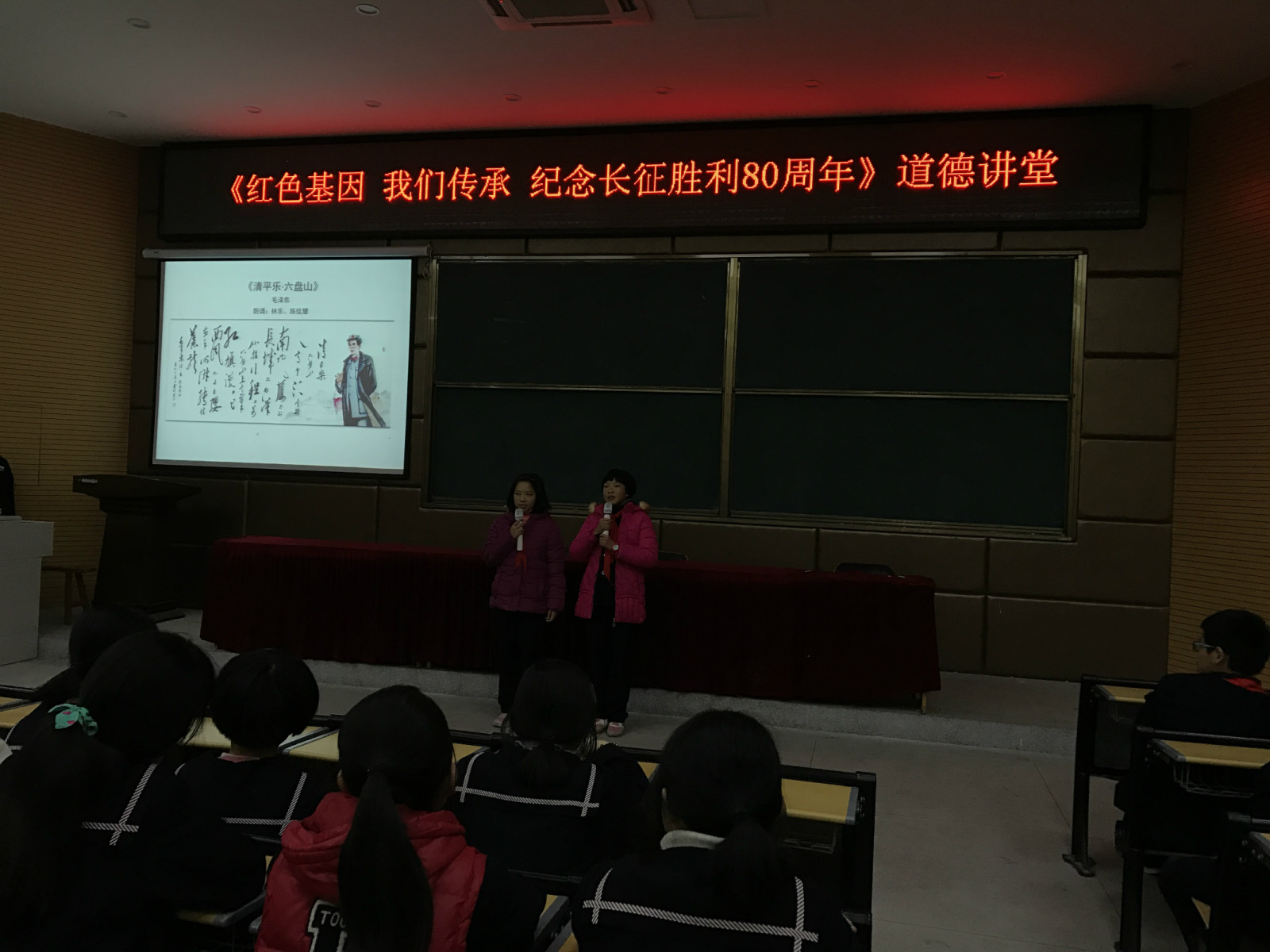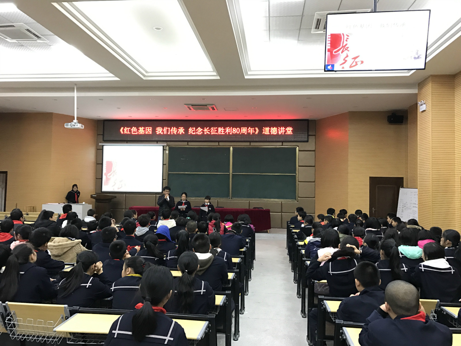 今天,由初中年段的黃照段長召開題為《紅色基因,我們傳承》的主題班隊會暨校道德講堂活動。活動由六大環(huán)節(jié)組成:(一)觀看《長征視頻》;(二)從視頻中學習長征問卷;(三)學習朗誦、齊讀;(四)唱少年先鋒隊隊歌;(五)長征精神分析;(六)觀看發(fā) 展中的中國,觀看軍隊的精神,體會新時代的長征精神。