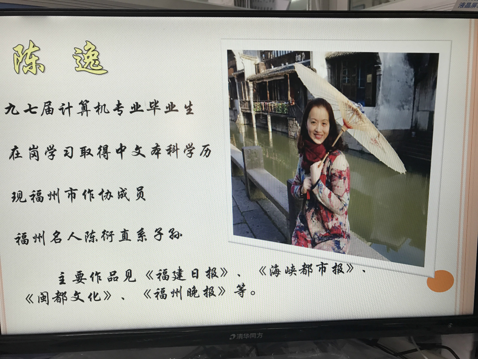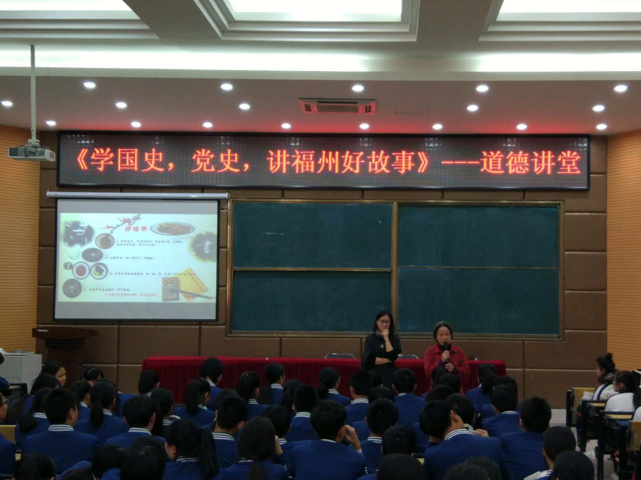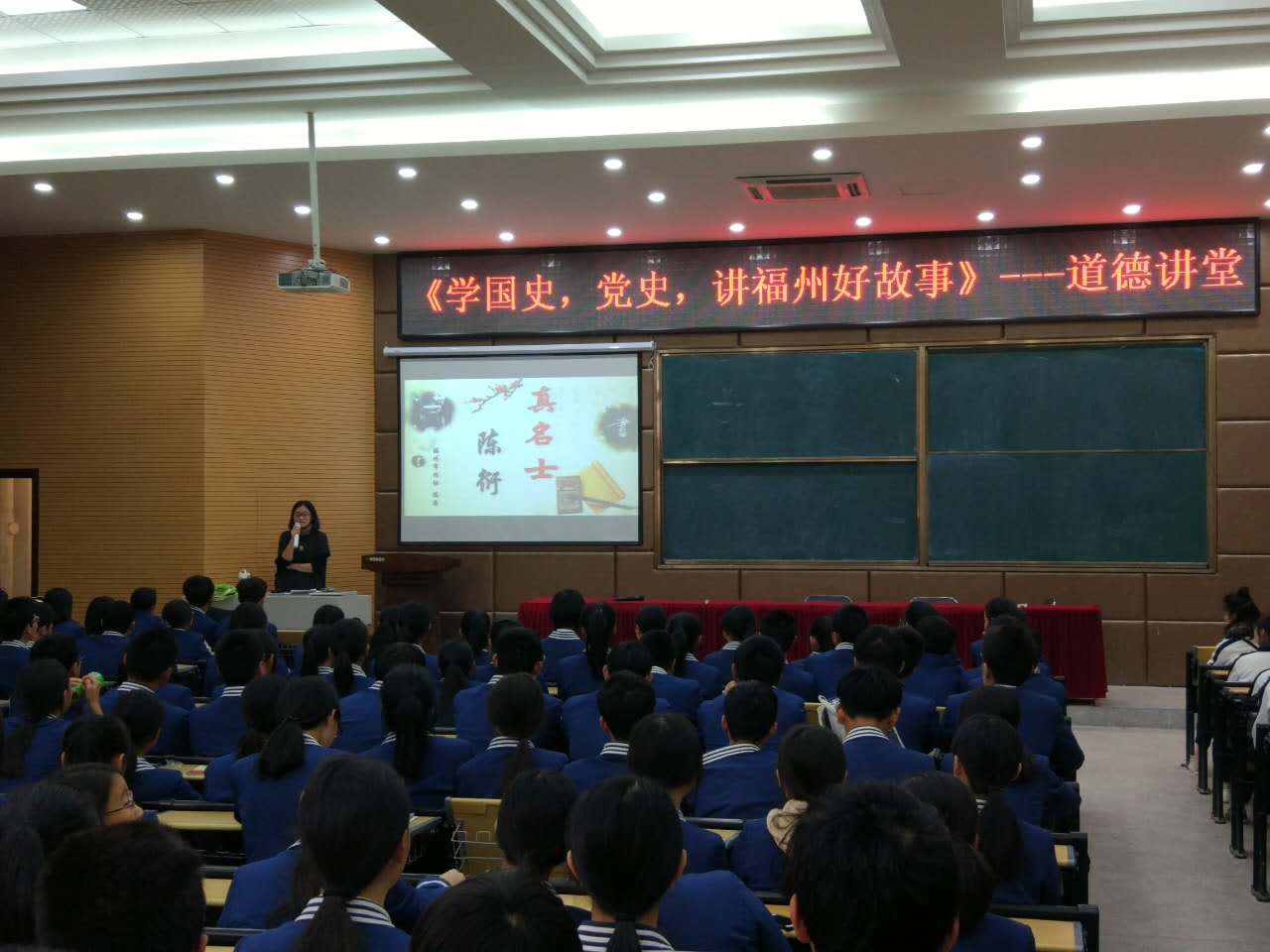 2016年12月23日,學(xué)校邀請(qǐng)福州名人陳衍的直系子孫陳逸開(kāi)設(shè)題為《學(xué)黨史、國(guó)史,講好福州故事》的道德講堂。
