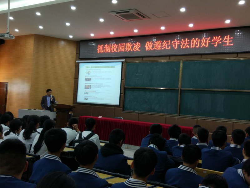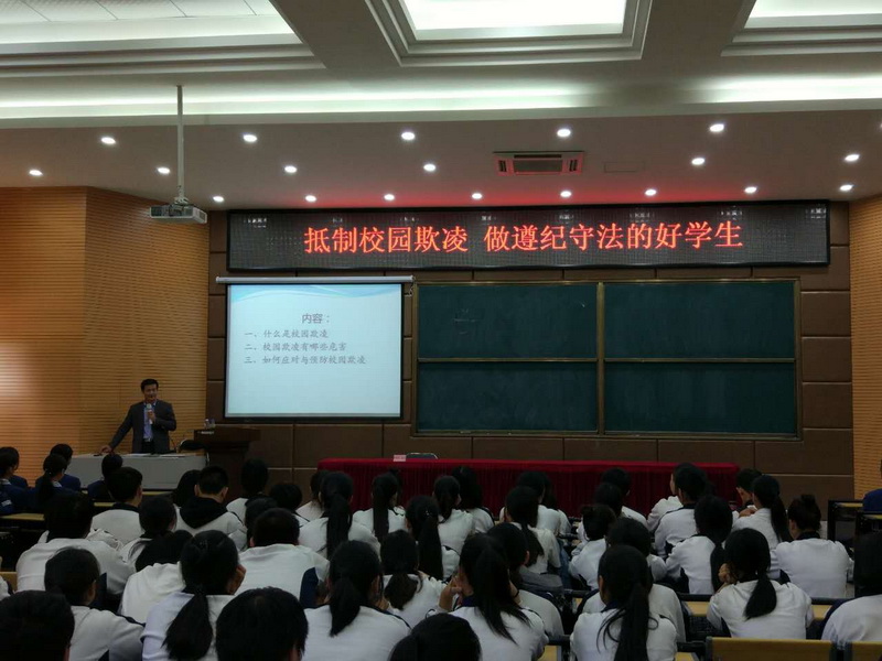 2016年12月9日下午,福州商貿(mào)職業(yè)中專學(xué)校(福州第二十二中學(xué))全體師生共同聽取了來自北京天馳君泰(福州)律師事務(wù)所呂新雪教授開設(shè)的講座《抵制校園欺凌,做遵紀(jì)守法的好學(xué)生》。