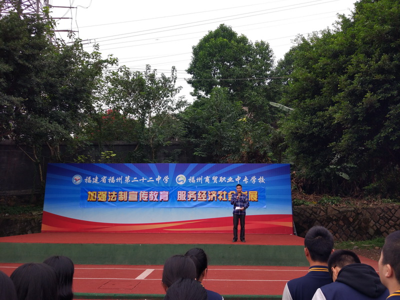 2016年12月5日,福州商貿(mào)職業(yè)中專學(xué)校(福州第二十二中學(xué))開展了《加強(qiáng)法制宣傳教育,服務(wù)經(jīng)濟(jì)社會(huì)發(fā)展》國旗下講話。崔勇副校長發(fā)表了講話。