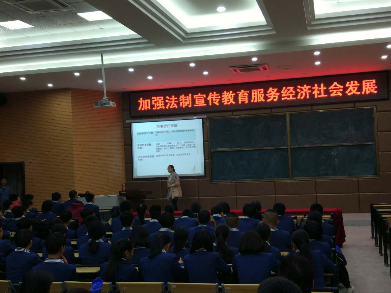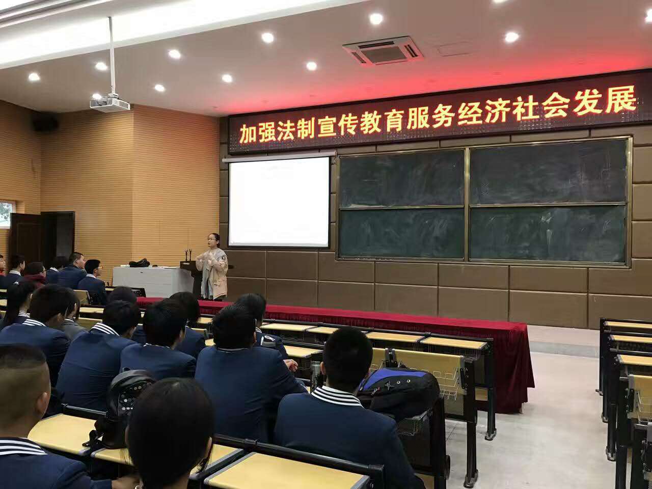 2016年12月2日下午,福州商貿(mào)職業(yè)中專學(xué)校(福州第二十二中學(xué))開展了《加強(qiáng)法制宣傳、教育服務(wù)經(jīng)濟(jì)社會發(fā)展》道德講堂活動,由陳涵老師主講。她首先以校園違規(guī)現(xiàn)象為例,結(jié)合專家講座,分析校園違規(guī)即違法犯罪行為。其次,通過現(xiàn)場提問,咨詢學(xué)生的法律知識,結(jié)合《未成年人保護(hù)法》《預(yù)防未成年人犯罪法》解讀學(xué)生的不文明現(xiàn)象。第三,通過對發(fā)生在美國的中國留學(xué)生毆打同學(xué)的事件,給同學(xué)們敲響了警鐘,有效的宣傳了九部委關(guān)于校園欺凌事件的相關(guān)精神。最后,陳涵老師帶領(lǐng)同學(xué)們一起對遵紀(jì)守法宣誓。