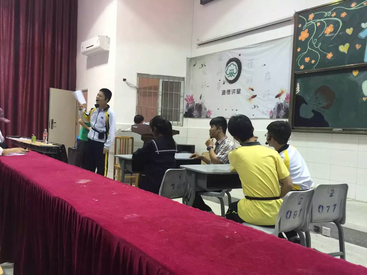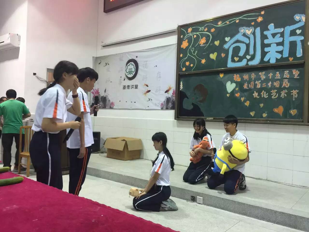 2016年5月福州商貿(mào)職業(yè)中專學(xué)校(福州第二十二中學(xué))又迎來新一屆的校園文化藝術(shù)節(jié)。5月3日中午,在思源樓階梯教室開展職專部和初中部的小節(jié)目表演評(píng)比。節(jié)目很豐富,有小品,歌唱,舞蹈,樂器表演……有的班級(jí)一下子準(zhǔn)備了2個(gè)節(jié)目。同學(xué)們個(gè)個(gè)熱情高漲,激情四射,雖然準(zhǔn)備時(shí)間很倉促,但是可以看出每個(gè)班級(jí)都很用心對待用心表演。