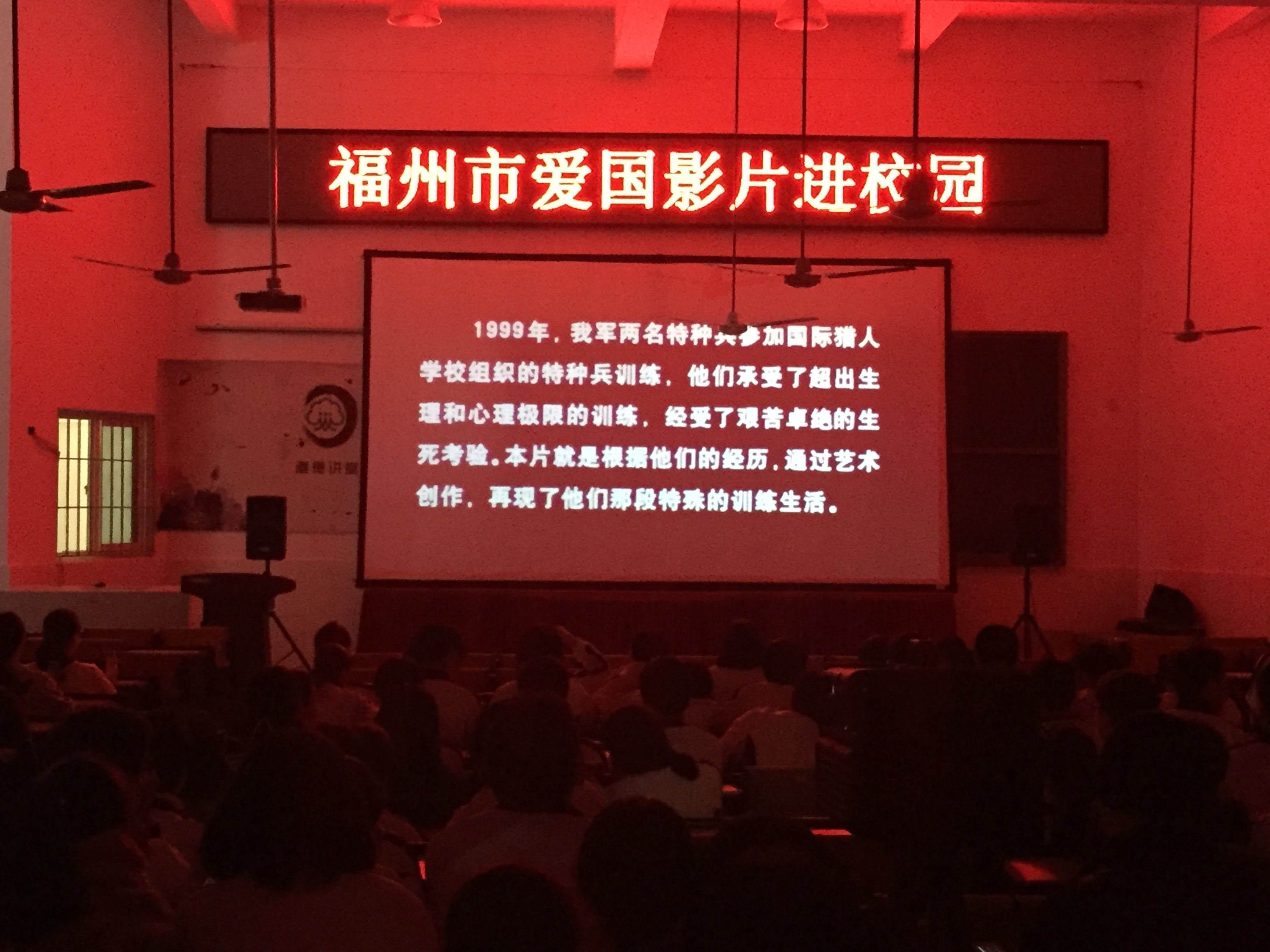 2016年3月25日,福州商貿(mào)職業(yè)中專(zhuān)學(xué)校、福州第二十二中學(xué)在中瑞電影城的支持下,開(kāi)展愛(ài)國(guó)影片進(jìn)校園活動(dòng),學(xué)校近2000名師生共同觀看了影片《沖出亞馬遜》。觀看影片后,同學(xué)們贊嘆于中國(guó)軍人的風(fēng)采和鋼鐵一樣的毅力,紛紛表示要向他們學(xué)習(xí),學(xué)習(xí)他們永不言敗的精神、以祖國(guó)為榮的精神!