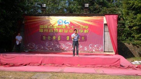2015年10月26日(周一)上午,福州第二十二中學、福州商貿(mào)職業(yè)中專學校開展了主題為“擁抱青運,健康成長”的國旗下講話。崔勇副校長強調了運動的重要性,健康是人生快樂之本,擁有一個強健的體魄才是我們認真學習的資本。他呼吁同學們做好廣播操和重視體育課,利用課外活動以及周末的時間參加一些體育活動,全身心地投入到體育活動中。