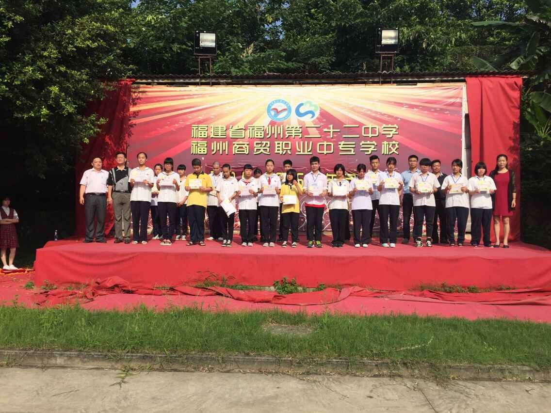 | 2015年6月30日上午,在雄壯的國歌聲中,2014-2015學年第二學期閉學式在我校操場拉開帷幕。首先,由崔勇副校長向全體師生宣讀了獲得本學期獎學金的學生名單和光榮冊名單,在全體師生的見證下,由福建陽泰集團董事長王影,福建省恒盛實業(yè)發(fā)展有限公司董事長林恒和我校校領(lǐng)導向獲獎的同學頒發(fā)了獎金和獎狀。接著,商雄書記在致辭中,回顧了一學年以來我校師生在教育教學中收獲的累累碩果,并激勵老師們同學們再接再厲取得優(yōu)異成績。最后,崔勇副校長給大家做假期法制安全教育。強調(diào)了暑期安全注意事項,包括交通、飲食以及特別強調(diào)了游泳安全,并預祝全校師生度過一個平安快樂的假期! 福州商貿(mào)職專 福州二十二中 2015.6.30   |