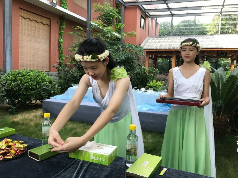 在活動(dòng)中,同學(xué)們與茉莉花茶傳承大師暢談,了解茉莉花茶的傳承工藝,了解茉莉花茶的傳統(tǒng)文化。同學(xué)們?cè)诓杷嚤硌?,通過(guò)對(duì)齊眉奉茶的練習(xí),進(jìn)一步了解中國(guó)傳統(tǒng)的接待禮儀,深深 地體會(huì)作為中國(guó)人的自豪!