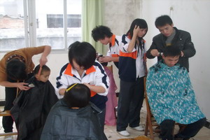 為響應(yīng)上級(jí)團(tuán)委的號(hào)召,我校團(tuán)委于12月25日開展了志愿者活動(dòng)。美容美發(fā)班級(jí)的同學(xué)利用專業(yè)優(yōu)勢(shì)在這樣特殊的日子到福州市閩侯善恩園,給那里的小朋友們理發(fā)。小朋友們看到熟悉的大哥哥大姐姐又來了,一個(gè)個(gè)都爭(zhēng)先恐后的排隊(duì)。