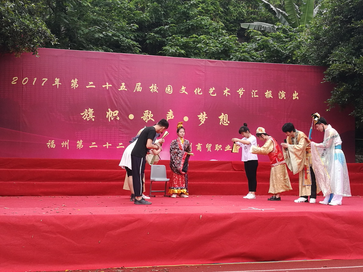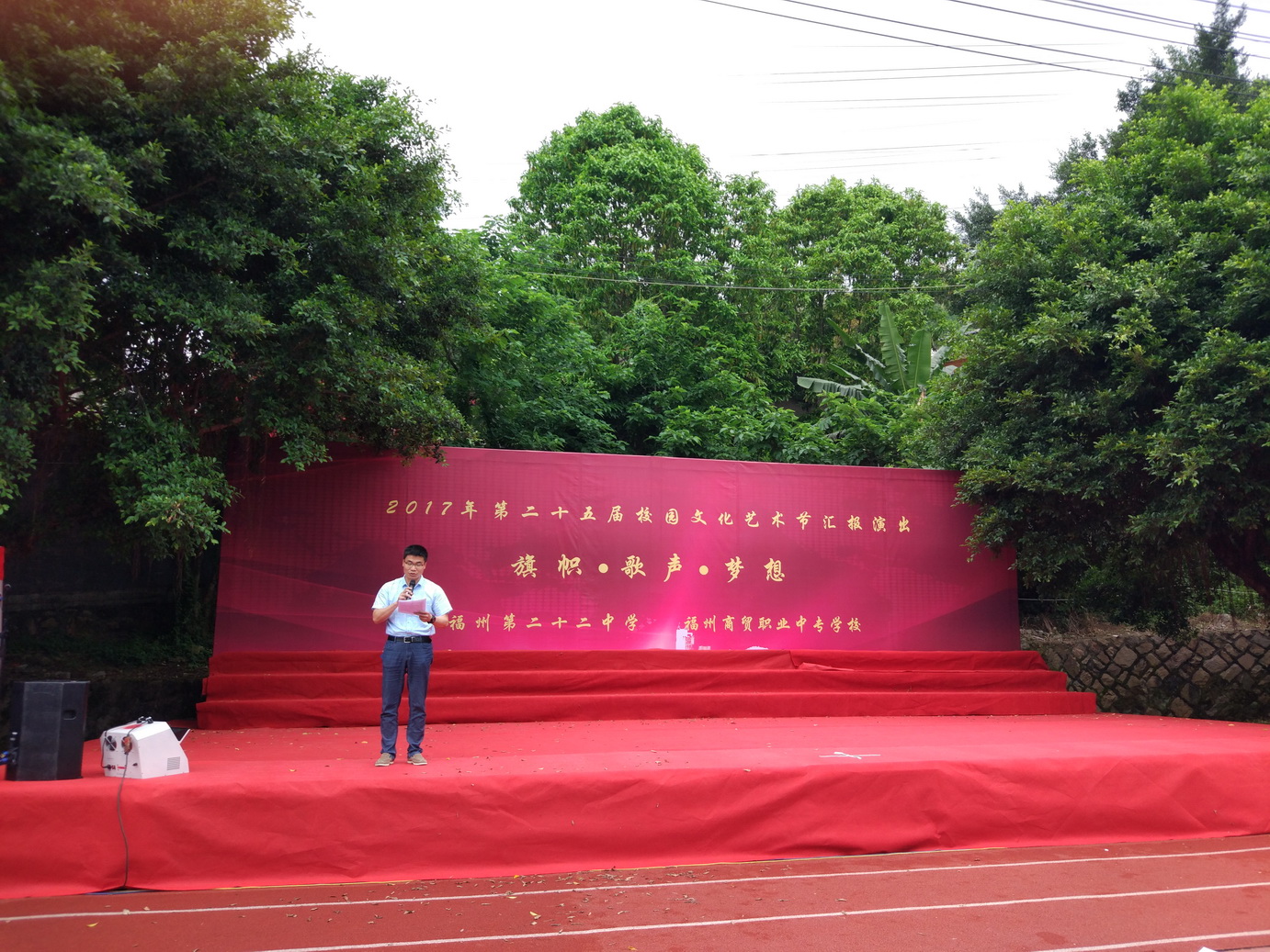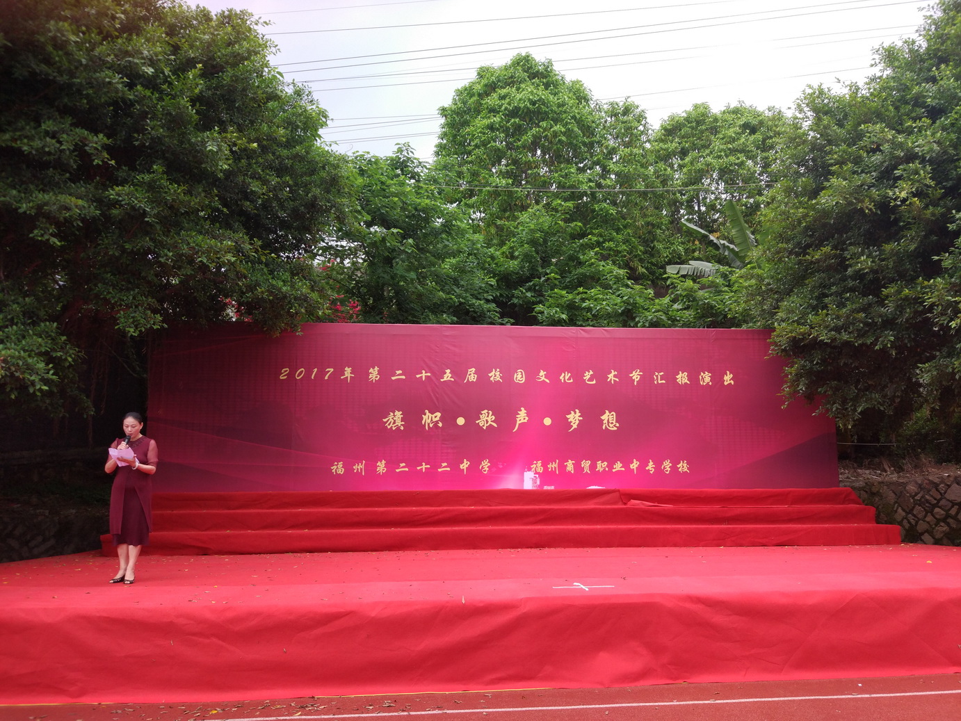 2017年5月12號(hào),福州商貿(mào)職業(yè)中專學(xué)校(福州第二十二中學(xué))以“旗幟·歌聲·夢(mèng)想”為主題的第二十五屆校園文化藝術(shù)節(jié)文藝匯演在操場(chǎng)進(jìn)行。廣大師生載歌載舞,節(jié)目豐富多彩,學(xué)生展示了才藝,張揚(yáng)了個(gè)性,活躍了校園文化,提高了綜合素質(zhì)。