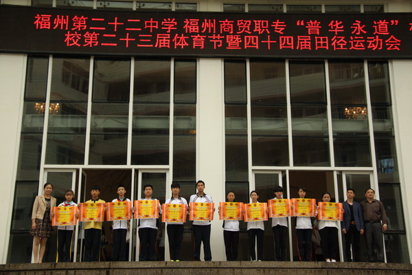 | 10月30日上午,福州商貿(mào)職專(福州二十二中)第二十三屆體育節(jié)暨四十四屆校田徑運(yùn)動(dòng)會(huì)閉幕式順利舉行,此次活動(dòng)還特邀了普華永道的李明總經(jīng)理。 在活動(dòng)過程中,黃舒榮副校長宣布了運(yùn)動(dòng)會(huì)各項(xiàng)評(píng)比獲獎(jiǎng)名單,李明總經(jīng)理和校領(lǐng)導(dǎo)向獲獎(jiǎng)的班級(jí)和個(gè)人頒發(fā)了獎(jiǎng)狀與獎(jiǎng)品。 崔勇副校長在閉幕詞中向所有辛勤工作的教練員、裁判員和工作人員表示衷心的感謝!向競(jìng)賽的優(yōu)勝班級(jí)和取得優(yōu)異成績(jī)的運(yùn)動(dòng)員表示熱烈的祝賀!并對(duì)全體同學(xué)在比賽中表現(xiàn)的勇于拼搏、吃苦耐勞、團(tuán)結(jié)和諧的精神予以表揚(yáng),并希望全體師生積極開展豐富多彩的體育活動(dòng)。  |