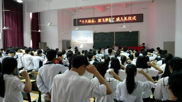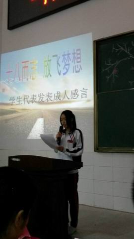 | 2014年5月23日下午,福州商貿(mào)職專在階梯教室舉行了職二年段成人禮。 “感恩、成長、夢想”為十八歲成人宣言,我們?yōu)槁毝氖藲q同學們送上具有紀念意義的成人儀式。 全場肅靜起立奏國歌,書記致詞、段長發(fā)言、教師寄語、學生代表發(fā)言、畢業(yè)學長經(jīng)驗之談、播放校園生活的點點滴滴、回憶也在也在腦海放映。 在國旗下宣誓,心中沒有了那份任性,沒有了缺乏理智的沖動,取而代之的是對生命的責任感,對社會的責任感;在國旗下宣誓的我們,要真正成為一個有思想、有抱負的成年人。成年了,要以成年人的眼光,審視過去,反省錯誤。或許從前可以用年幼無知辯解,而從今日起再無任何借口;成年了,要立足于成年人的位置,腳踏實地地做好每一件平凡的小事。 成人禮結(jié)束后同學們在便利貼上寫下了自己的夢想,貼在了承載著同學們的夢想樹上,夢想將茁壯成長。  |