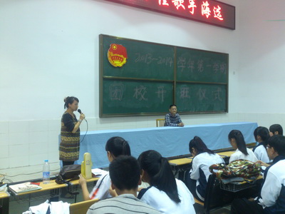 | 2013年10月31日下午,我校團(tuán)校開班儀式在思源樓的階梯教室正式召開。 儀式開始前,參加此次開班儀式的60余位入團(tuán)積極分子通過了儀容儀表檢查。此次開班儀式的主持人是王翠娟老師,特別來賓是商雄書記。首先,主持人宣布儀式開始,并介紹了特別來賓。接著我校黨總支書記商雄老師為即將加入共青團(tuán)的學(xué)生們做了動(dòng)員,他的演講振奮了在座的同學(xué)們,同學(xué)們都聽得全神貫注。最后同學(xué)們紛紛表示,作為入團(tuán)積極分子的一員,要做好自己的學(xué)生榜樣,以嚴(yán)格的標(biāo)準(zhǔn)衡量自己,用積極的態(tài)度去面對(duì)學(xué)習(xí)、生活。 福州商貿(mào)職專 福州二十二中 2013.11.3  |