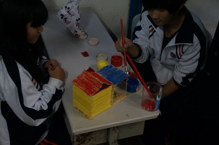 2012年12月19日,天空呈現(xiàn)一片灰暗,蒙住了白云,幻化成烏云。而在福州商貿(mào)職業(yè)中專學(xué)校中,這樣的天氣似乎抵擋不住學(xué)生們動手實踐的熱情。小小的教室里,黑壓壓坐著各個班級的學(xué)生。他們的面前都擺著正在制作的工藝品,剪刀,寫過字的廢紙,吃過泡面的木筷子等等。這就是我校團委學(xué)生會舉辦的“關(guān)心環(huán)境,從我做起,變廢為寶,創(chuàng)意無限”環(huán)保主題活動了。