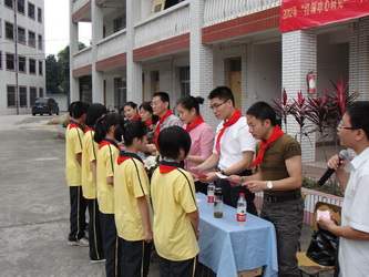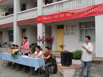 | 2012年5月30日下午,福州第二十二中學(xué)少先隊隆重舉行了初一年級“紅領(lǐng)巾心向黨—學(xué)雷鋒找榜樣 爭四好”主題隊日活動暨少先隊退隊儀式,本次活動由團委書記許友忠老師主持。 參加本次活動的有初一年段的各班輔導(dǎo)員、年段長、丘琰校長、校黨總支商雄書記、崔勇副校長、教務(wù)處陳紅主任、德育處何宏宇主任、保衛(wèi)處崔寧文主任。在開場的紅領(lǐng)巾之歌中,少先隊員代表們給領(lǐng)導(dǎo)們獻上紅領(lǐng)巾。校黨總支商雄書記給我們回顧了黨史,展望了未來,少先隊員們紛紛表示愿意如商雄書記所要求的那樣:不斷提高自己,努力完善自己,把“時刻準(zhǔn)備著”化為從現(xiàn)在做起的具體行動,勤奮學(xué)習(xí),苦練本領(lǐng),磨練勇敢頑強的意志!接著,在“四好少年”“校優(yōu)秀少先隊員”頒獎儀式之后,由少先隊員代表劉文心同學(xué)發(fā)言,回顧了紅領(lǐng)巾飄揚胸前的日子里度過的美好時光,并表示摘下鮮艷的紅領(lǐng)巾,他們將從此走向成熟、自強自立,從此承擔(dān)起對家庭、對學(xué)校、對社會和國家的責(zé)任。少年先鋒隊退隊儀式在爭當(dāng)四好少年歌曲中拉開了帷幕,全體初一年級少先隊員最后一次莊嚴(yán)地行少先隊隊禮,重溫了在隊旗下的誓言。 當(dāng)團委書記許友忠老師宣布請少先隊員鄭重地取下紅領(lǐng)巾并進行珍藏時,會場的氣氛顯得格外凝重。全體少先隊員舉起右手莊嚴(yán)宣誓,表達了自己會牢記曾經(jīng)的誓言,不忘在紅領(lǐng)巾陪伴下的成長歷程,在今后的學(xué)習(xí)生活中將不斷增強責(zé)任感和使命感,提升自身素質(zhì),為國家、為社會承擔(dān)責(zé)任做準(zhǔn)備的真情實感。最后,在退旗曲中少先隊退隊儀式活動圓滿結(jié)束。 福州商貿(mào)職專 福州二十二中 德育處 2012年6月1日  |