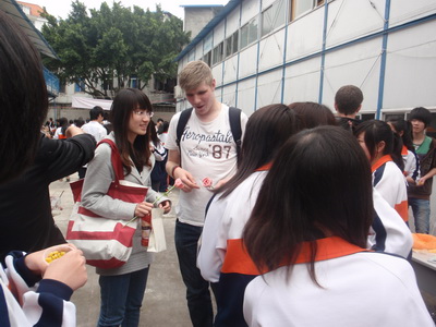 | 由福州商貿(mào)職業(yè)中專德育處、商貿(mào)組、團委、學(xué)生會共同舉辦的“第八屆校園跳蚤義賣市場”,經(jīng)過近一個月的精心策劃組織,4月6日下午在校操場舉行。各班根據(jù)各自專業(yè)特點,設(shè)立攤位,設(shè)置具獨創(chuàng)性的櫥窗,自主經(jīng)營,并以各種廣告形式推銷商品,形成濃厚的商業(yè)氛圍,切合我校“商貿(mào)”專業(yè)特色。在現(xiàn)場,豐富多彩的廣告和種類繁多的商品吸引了眾多的師生,市場熱鬧非凡,在跳蚤市場上時不時可以看到德國學(xué)生的身影,對,這就是今年跳蚤市場的一大亮點。今年我校德國交換生來學(xué)校參觀訪問,一起參與了這次的跳蚤市場活動。 跳蚤市場充分展示了同學(xué)們的廣告、推銷、公關(guān)、商品陳列等綜合能力。通過現(xiàn)場實際操作比武,大家互蹉技藝,取長補短,共同進(jìn)步。整個活動現(xiàn)場體現(xiàn)著同學(xué)間互幫互助,團結(jié)友愛的精神,體現(xiàn)了我校是一個富有愛心及凝聚力的一個團體。 福州商貿(mào)職業(yè)中專 德育處 2012年4月9日  |