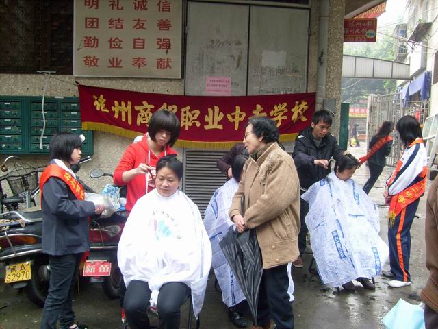 | 3月15日上午應(yīng)市教育局的號召,在全市范圍內(nèi)開展志愿者活動。本著為社區(qū)服務(wù),提高中職學(xué)生在群眾中影響力的宗旨,我校志愿者們利用掌握的技術(shù)免費為社區(qū)的居民們理發(fā)。雖然當(dāng)日下起了下雨,但是志愿者們還是準(zhǔn)時來到了活動地點??吹狡饺绽飦韥硗膶W(xué)生走進(jìn)了社區(qū),居民們也感到十分的親切,他們表示這樣的活動應(yīng)該多多開展。在全市開展志愿者活動氛圍下,我校也積極聯(lián)系各個社區(qū),讓學(xué)生的技術(shù)和品格在實踐中不斷的成長。  |