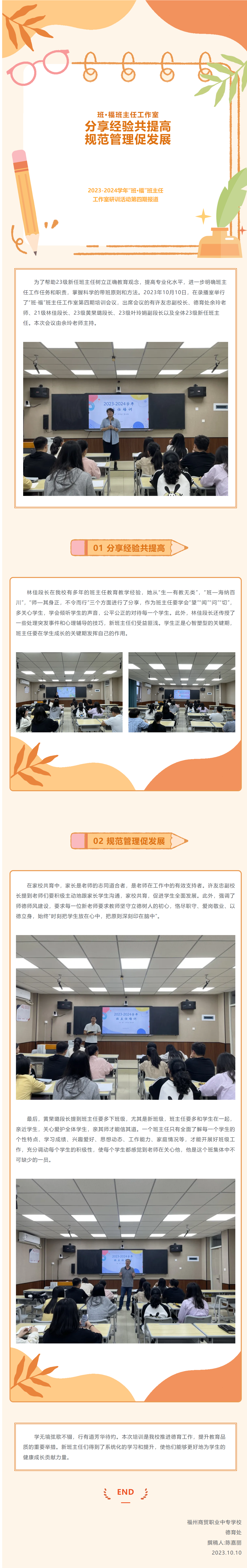 班·福班主任工作室丨分享經(jīng)驗共提高,規(guī)范管理促發(fā)展——2023-2024學(xué)年“班·?!卑嘀魅喂ぷ魇已杏?xùn)活動第四期報道