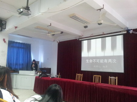 結(jié)合最近經(jīng)常從報紙或網(wǎng)絡(luò)等媒體上看到中學(xué)生輕生的報道,2012年5月3日下午,福州商貿(mào)職專楊萍老師給職二年段的學(xué)生開展了“生命不可能有兩次”的心理健康講座。