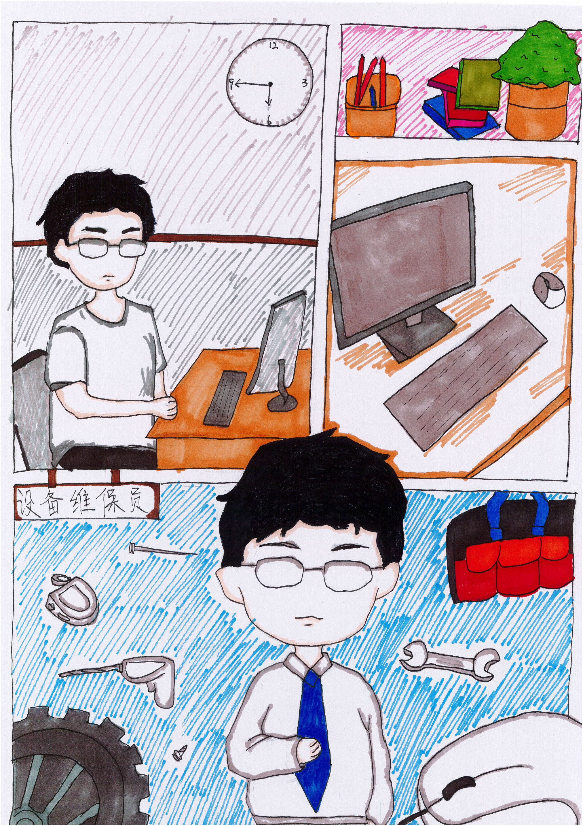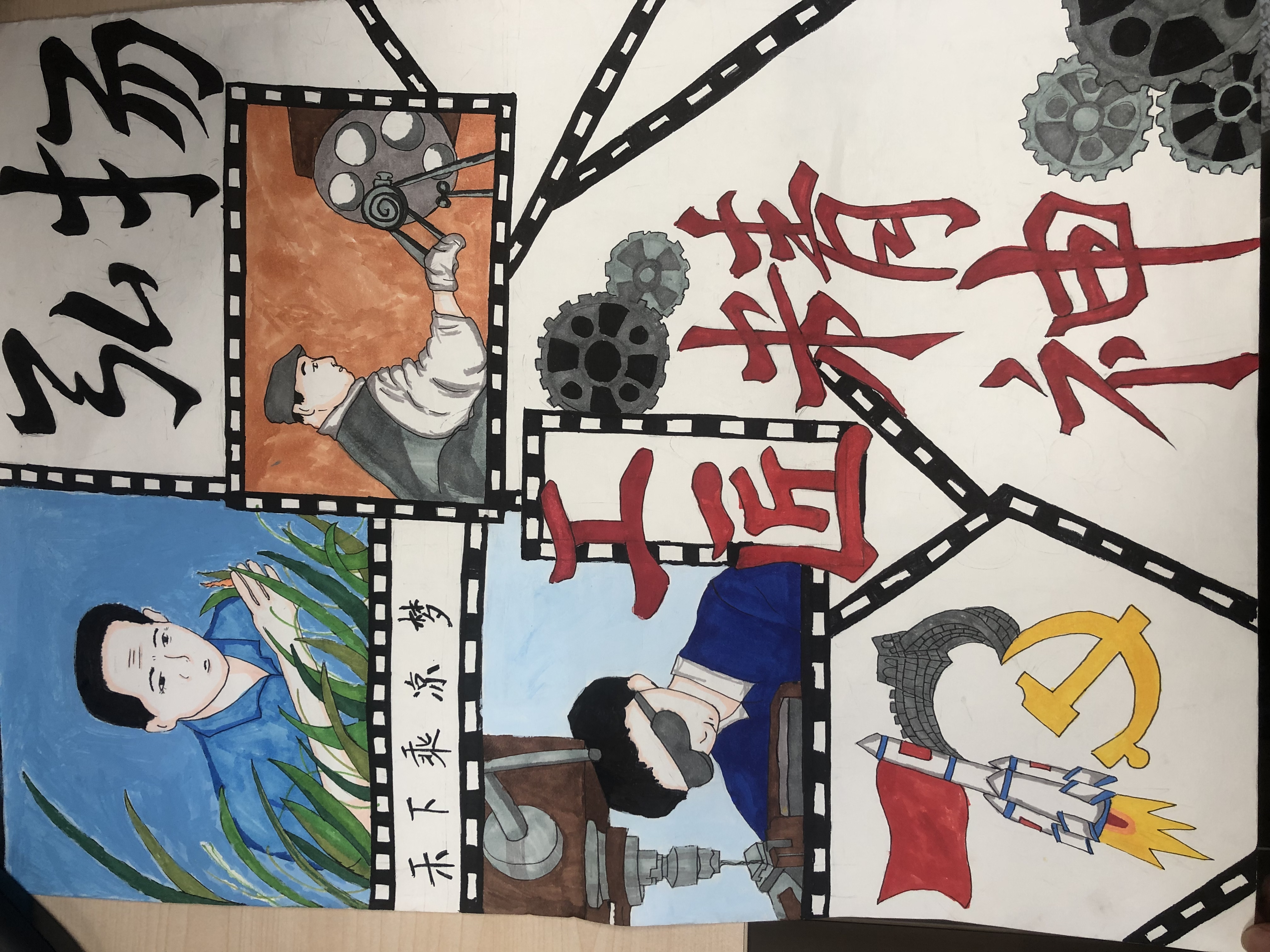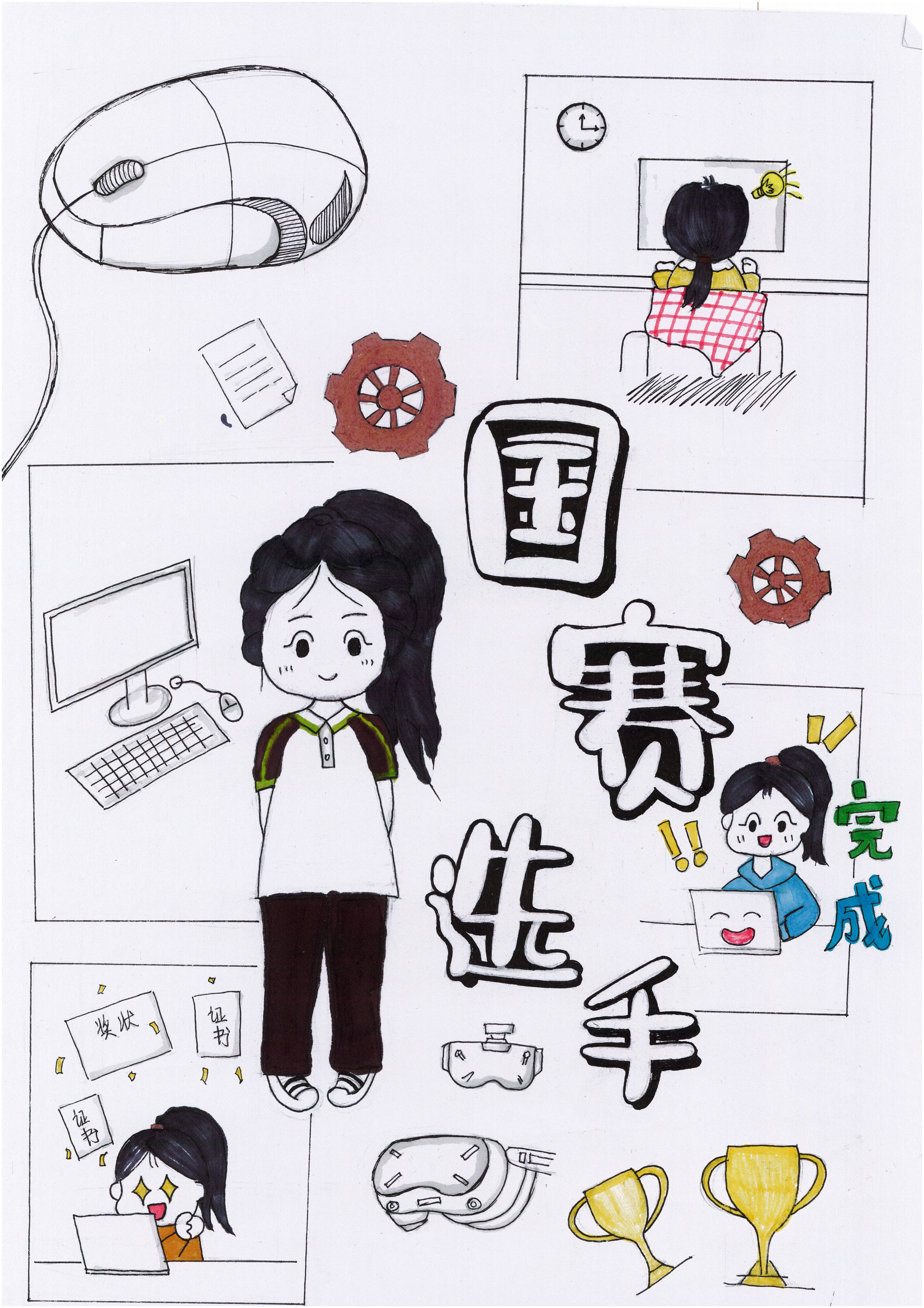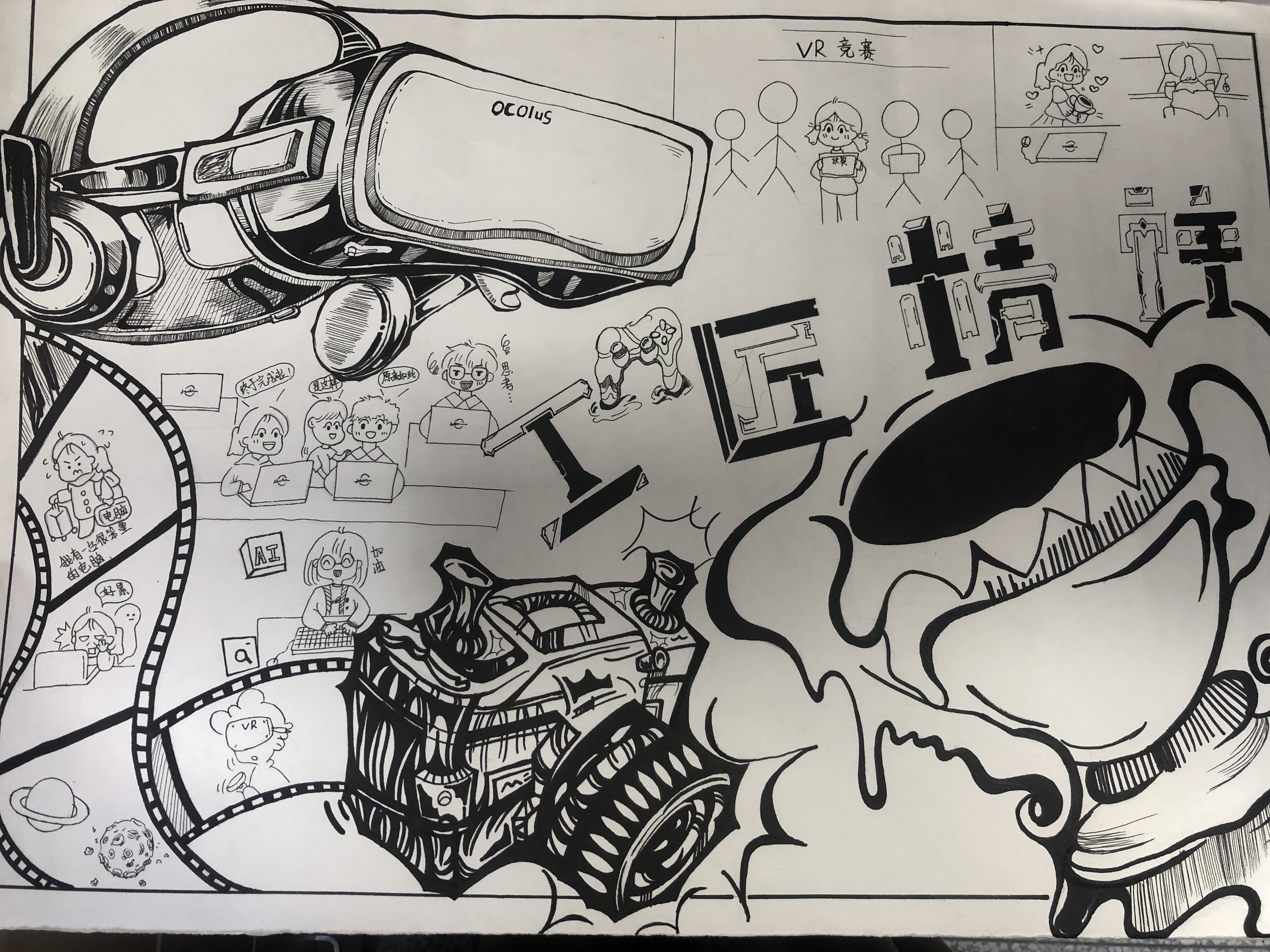 在連老師的班會(huì)課上,通過(guò)展示小組同學(xué)的事跡,挖掘他們身上的精神品質(zhì),并以小組為單位設(shè)計(jì)一幅“工匠精神”主題的繪畫(huà)作品,發(fā)揮“數(shù)媒”專(zhuān)業(yè)技能,用實(shí)際案例引導(dǎo)同學(xué)們對(duì)“工匠精神”進(jìn)行深刻了解。