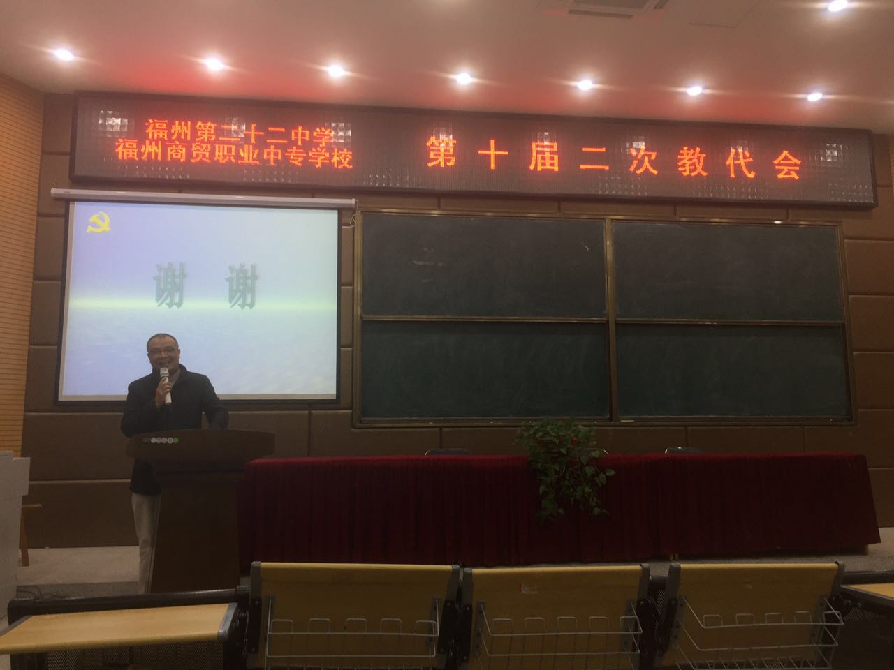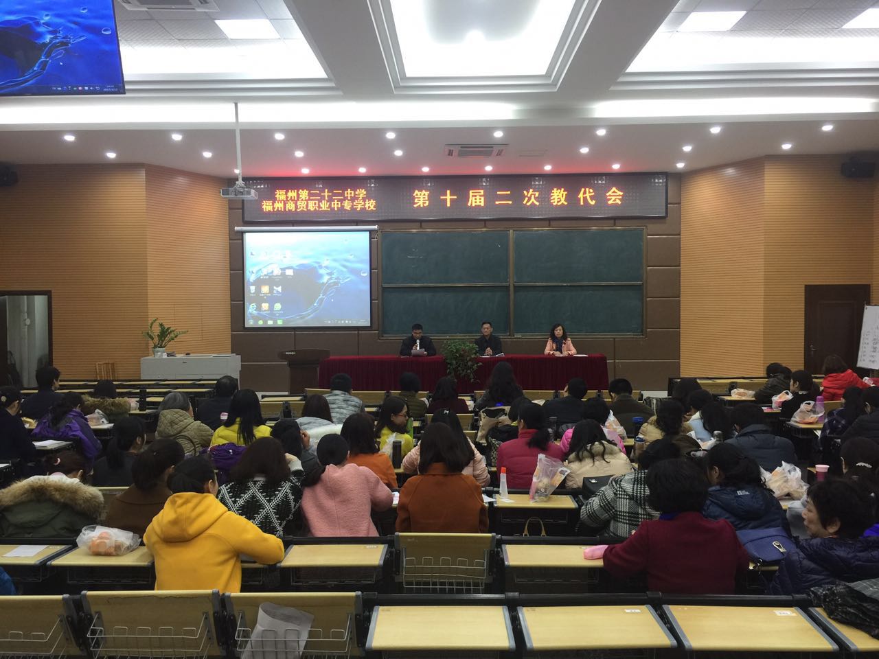 在學習黨的十八屆四中全會精神之后,福州商貿(mào)職專(福州二十二中)又迎來了第十屆二次教師代表大會。大會于2017年1月13日下午兩點在思源樓階梯教室隆重舉行。此次大會,全體代表認真聽取主持工作的商雄書記作的2016年學校工作報告和學校財務工作報告、各處室中層干部述職報告,代表們還分組討論了籌建學校教工活動室、提高班主任績效待遇等關于職工福利待遇方面的提案,并審議通過商雄書記作的學校工作報告和財務工作報告。最后在黨總支商雄書記的閉幕詞中結束了本次教代會。