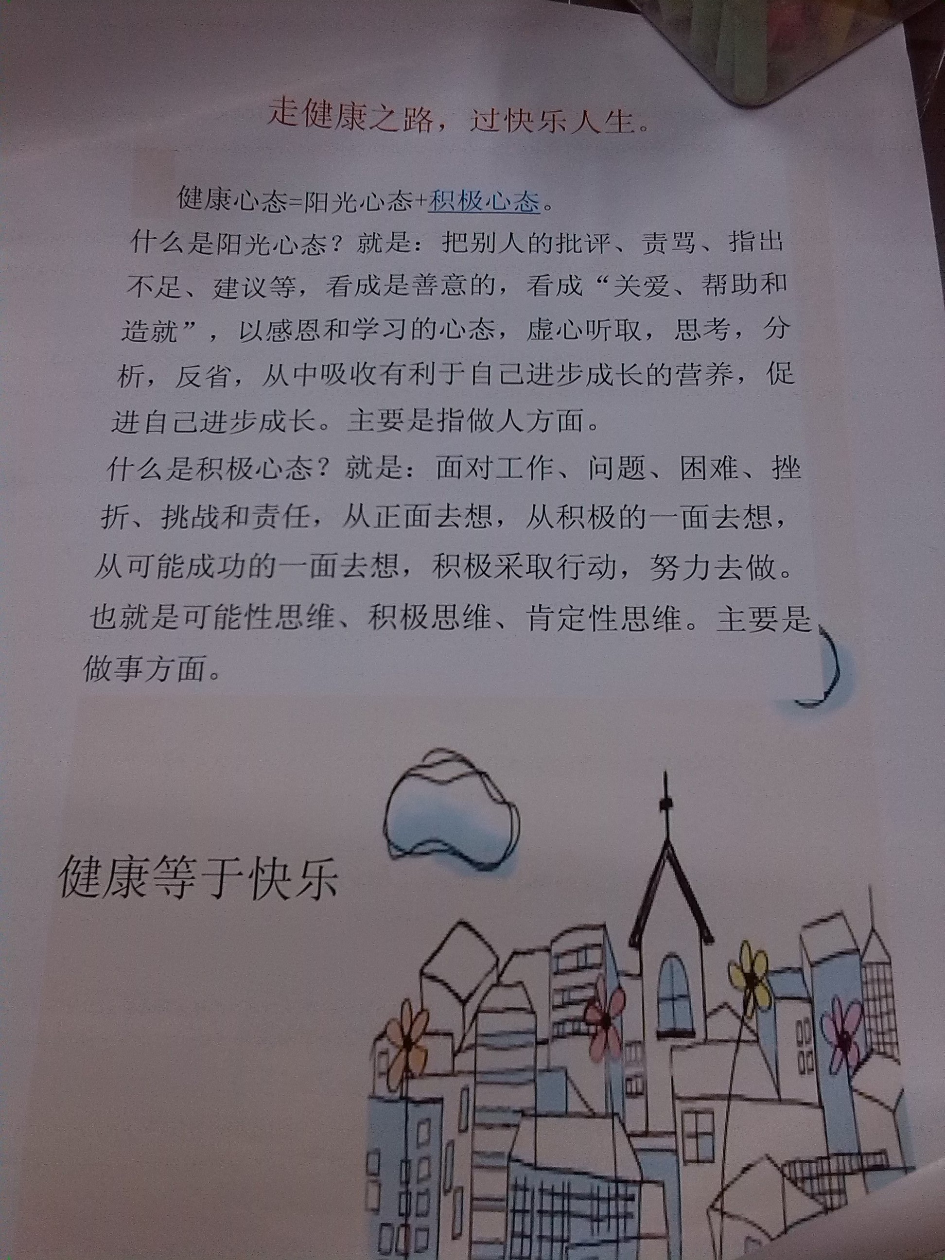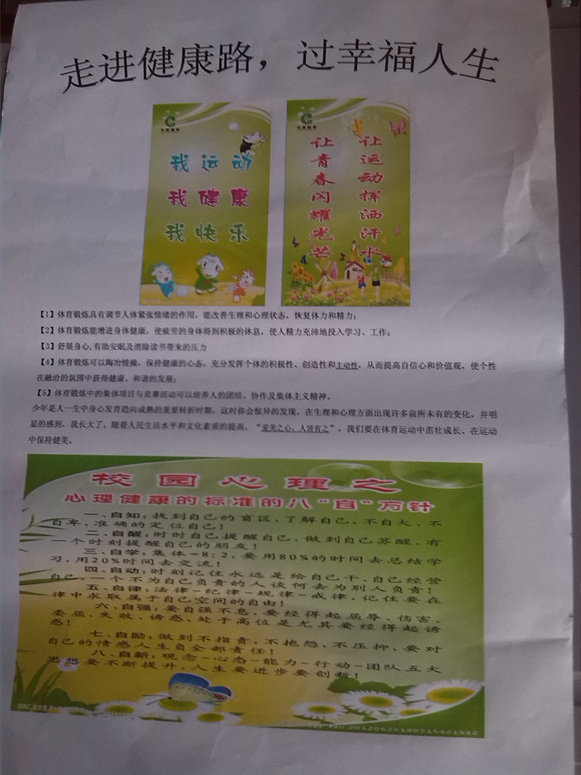 根據(jù)我校以賽代考的精神,11月6日,我校開展了以“走健康路,過(guò)快樂人生”為主題的心理電子小報(bào)制作比賽。本次活動(dòng)的目的為進(jìn)一步在全校宣傳普及心理健康知識(shí),提高學(xué)生維護(hù)心理健康的自覺意識(shí),讓學(xué)生樹立正確的心理健康觀念,以全面推動(dòng)我校心理健康教育工作發(fā)展,形成校本心理健康教育特色,營(yíng)造健康、和諧、陽(yáng)光的校園育人氛圍,提高學(xué)生的心理健康水平。此次活動(dòng)得到較圓滿的結(jié)果,同學(xué)們的作品主題明確,切合命題,內(nèi)容健康,充實(shí)引人,符合要求。 有的小報(bào)色彩運(yùn)用合理,風(fēng)格突出,布局結(jié)構(gòu)得當(dāng),美感獨(dú)具; 有的小報(bào)表達(dá)清晰,版面完整;有的小報(bào)有獨(dú)特的構(gòu)思、新穎的創(chuàng)意。 尤其職一四班的陳旭同學(xué)的作品從各角度來(lái)說(shuō)都是非常完美的。而職一五班從總體來(lái)說(shuō)是完成最好的。今后的學(xué)習(xí)中,我們將會(huì)舉辦更多這樣的活動(dòng),讓同學(xué)們?cè)谧鲋袑W(xué),在做中體驗(yàn)快樂。