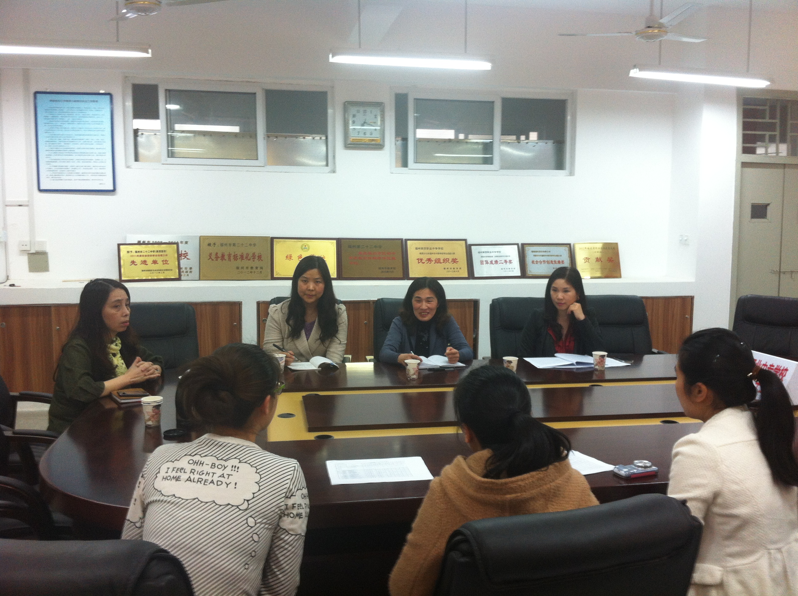 2014年3月25日下午,福建職業(yè)技術學院校外語系主任繆主任攜商務英語專業(yè)組長、教學秘書共三位老師專程到福州商貿(mào)職業(yè)中專學校調研。她們此行的目的是想了解我校13級商務英語五年專學生的學習情況。我校職教處郭玲主任主持召開座談會,學校英語組組長林艷老師、13級商務英語五年專班主任以及所有任課教師出席了此次座談會。