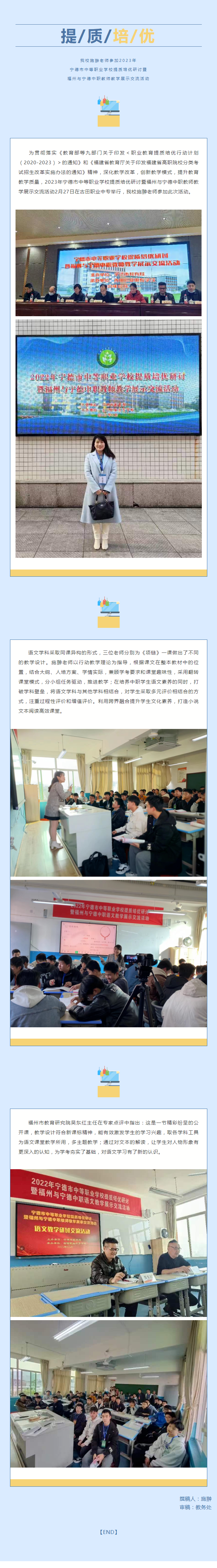 我校施翀老師參加2023年寧德市中等職業(yè)學(xué)校提質(zhì)培優(yōu)研討?hù)吒V菖c寧德中職教師教學(xué)展示交流活動(dòng)