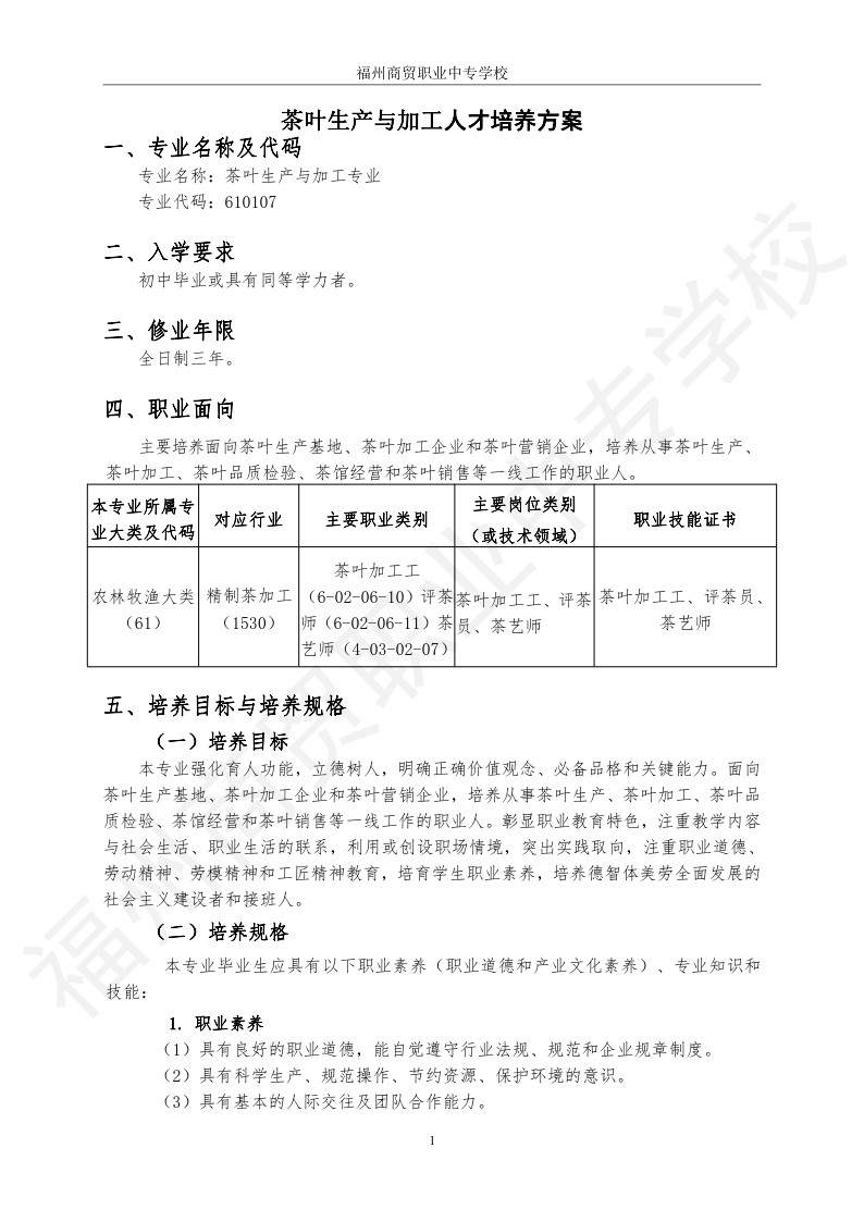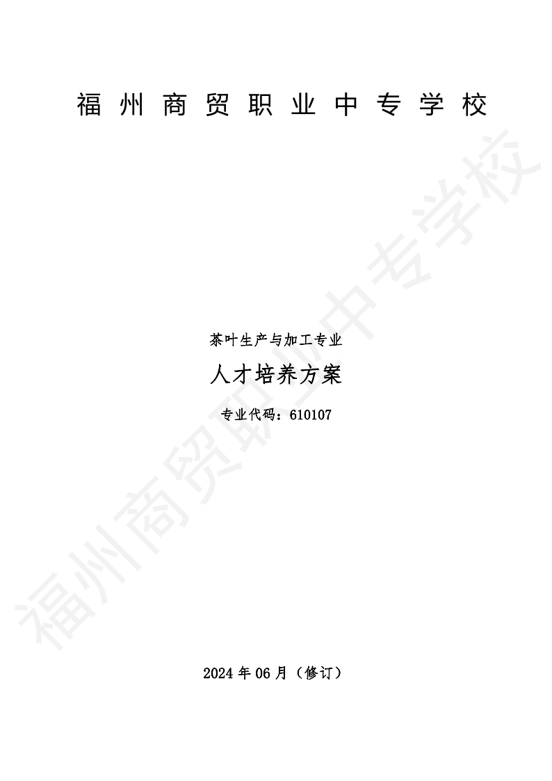 福州商貿(mào)職業(yè)中專學(xué)校 《茶葉生產(chǎn)與加工》專業(yè) 2024級(jí)人才培養(yǎng)方案.pdf